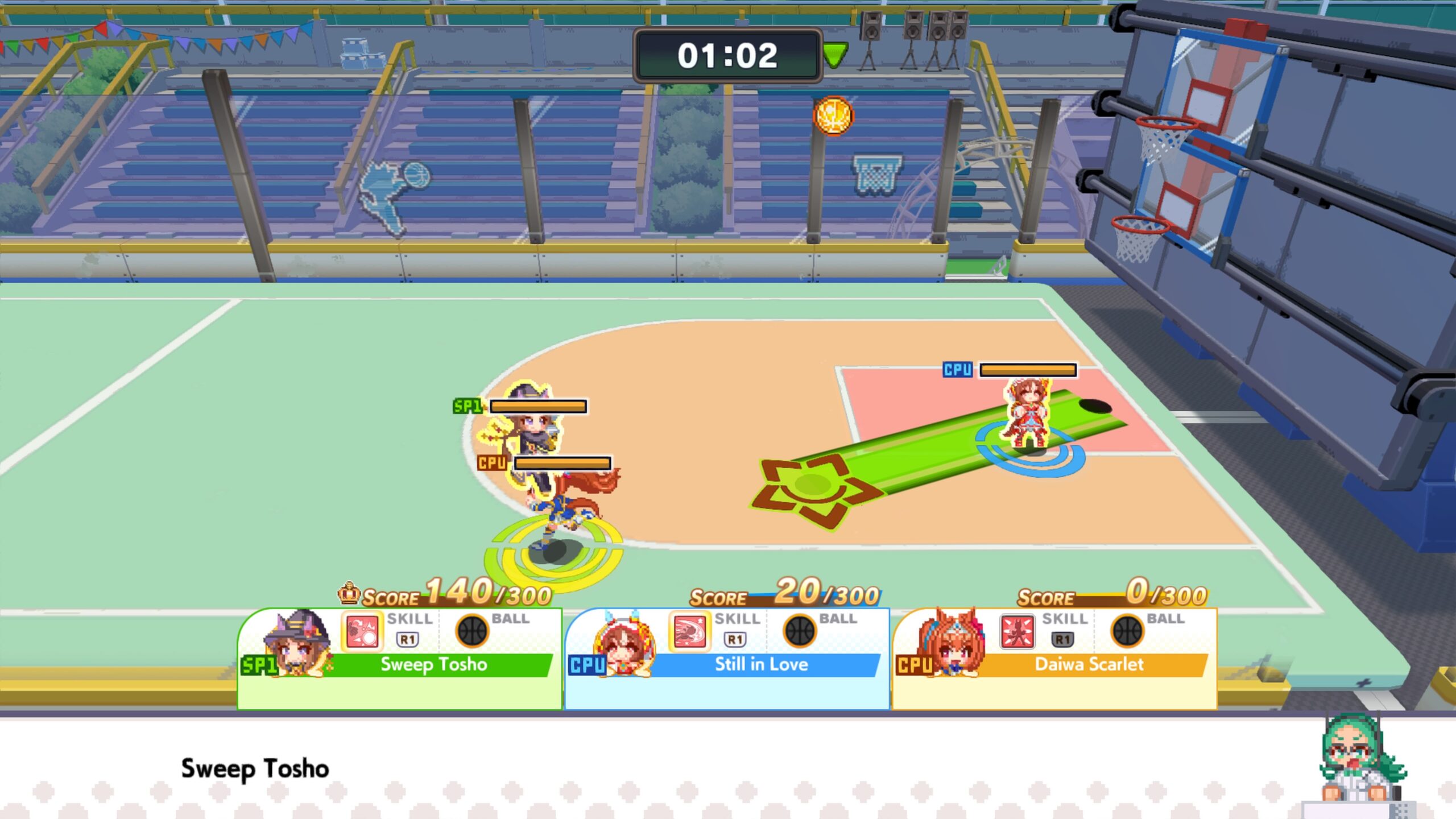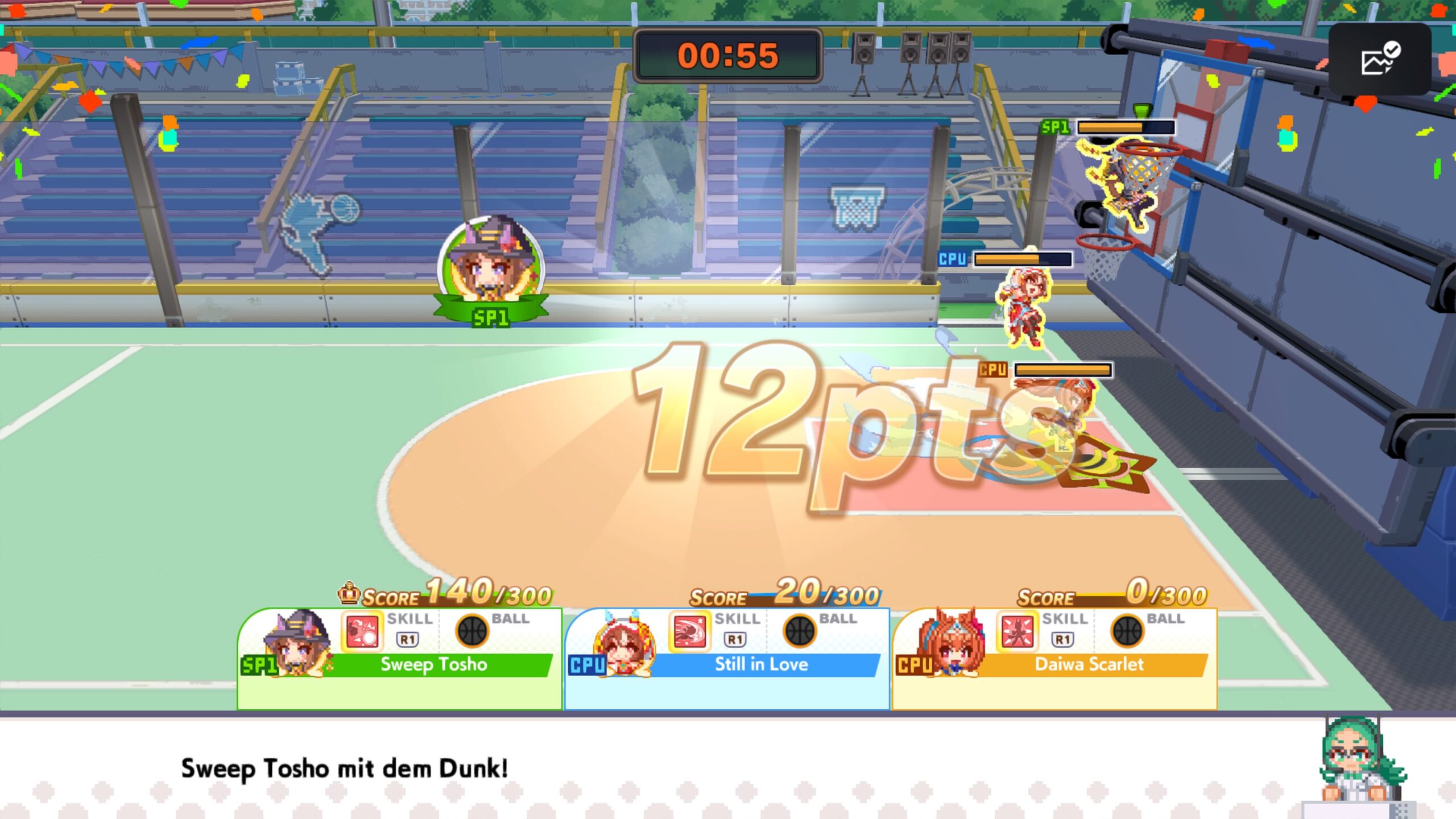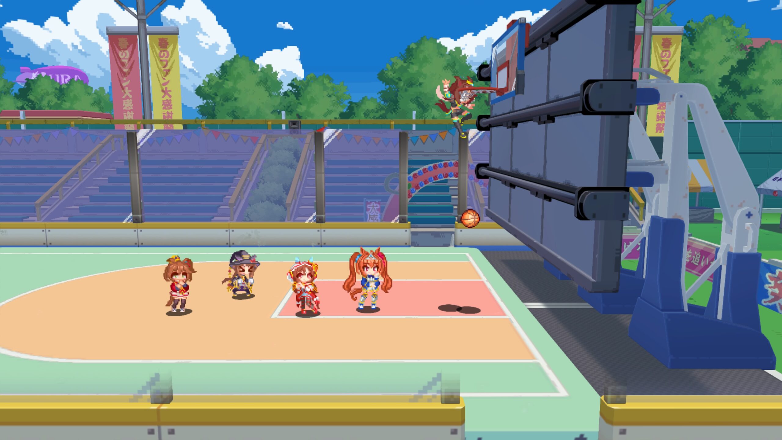 Das ändert sich leider auch bei den anderen Disziplinen nicht. Beim Basketballspiel gilt es, den Ball zu behaupten und möglichst viele Körbe zu werfen. Auch hier kommen die besonderen Skills der Uma Musume zum Tragen. Ab und an behindern aber auch besondere Hindernisse das Spielfeld. Das Äquivalent zum Völkerball sieht vor, die anderen Mädchen auszuschalten und als Letzte auf dem Feld zurückzubleiben. Zu guter Letzt gibt es dann doch noch ein wenig Variation beim Wettessen.