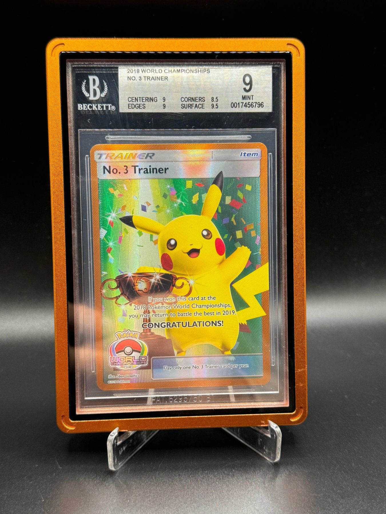 Natürlich ist die Karte gegraded: Der Zustand der Karte wurde von Beckett mit 9 von 10 Punkten bewertet. Zum Vergleich: Eine ähnliche Karte des norwegischen Spielers Tord Reklev erzielte 2023 bei einer Auktion 70.000 Pfund. Der bisherige Höchstpreis für eine Trophäenkarte wurde im Dezember 2023 mit einem Set von Pikachu-Trophäenkarten aus dem Jahr 1997 erzielt, das für 800.000 Dollar verkauft wurde.