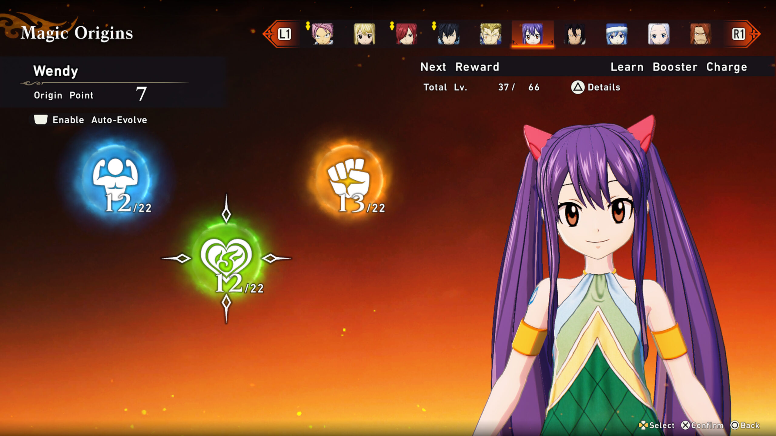 Ein weiteres gutes Feature ist die Tatsache, dass man, wenn Charaktere ein bestimmtes Level überschritten haben, herumlaufende Gegner einfach im Vorbeigehen besiegen kann, ohne dass es zu einem richtigen Kampf kommt. Das macht vor allem das Erkunden von Gebieten angenehmer. Dabei erhält man auch Erfahrungspunkte für die Magic Origin eines Charakters. Diese Erfahrungspunkte können dann in drei verschiedene Fähigkeitsbäume pro Charakter investiert werden, um neue oder verbesserte Magieangriffe zu erlernen und allgemein bessere Statuswerte zu erhalten.