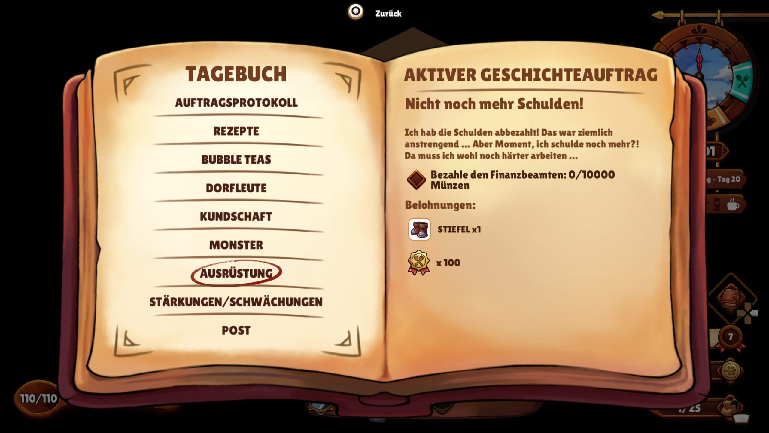 Unsere Tage wollen also gut durchgeplant sein, wenn wir das Meiste aus ihnen herausholen wollen. Da das Spiel aber auch „cozy“ Aspekte beinhaltet, haben wir niemals Zeitdruck. Wir gehen unsere Aufgaben in beliebigem Tempo an. Der Finanzamt-Mitarbeiter droht zwar mit Zwangsvollstreckung, aber wir dürfen die Schulden wann immer wir können und wollen zurückzahlen. Umso früher, umso besser, denn damit treiben wir auch die Handlung voran und schalten neue Dungeons frei.