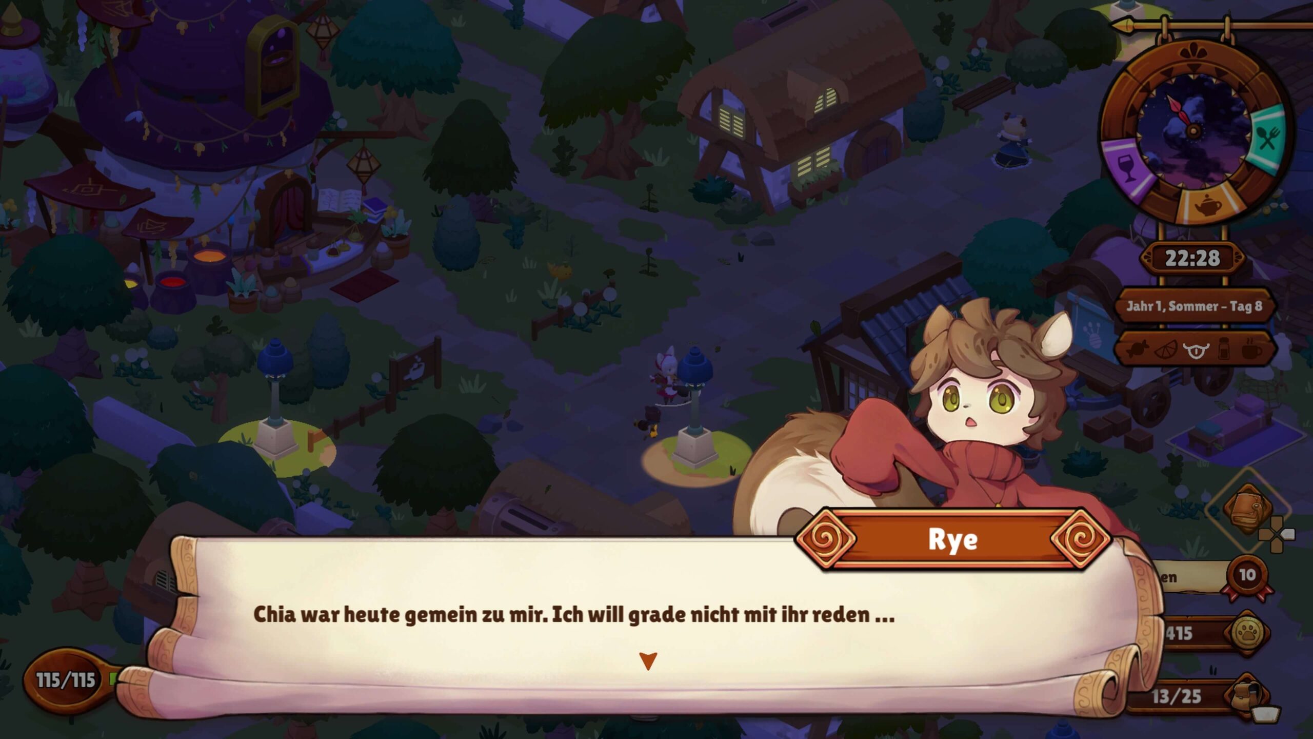 Hier und da entwickeln sich ein paar kleine Handlungsstränge durch Nebenquests, aber ich hätte mir etwas mehr Lebendigkeit gewünscht, damit man mehr Anreiz hat, aus dem Dungeon-Restaurant-Loop auszubrechen und einfach mal im Dorf abzuhängen. Wenn man aber einfach ein paar Stunden abschalten möchte, ohne intensiv nachdenken zu müssen, ist Cuisineer mit seiner gemütlich fröhlichen Art einen Blick wert.