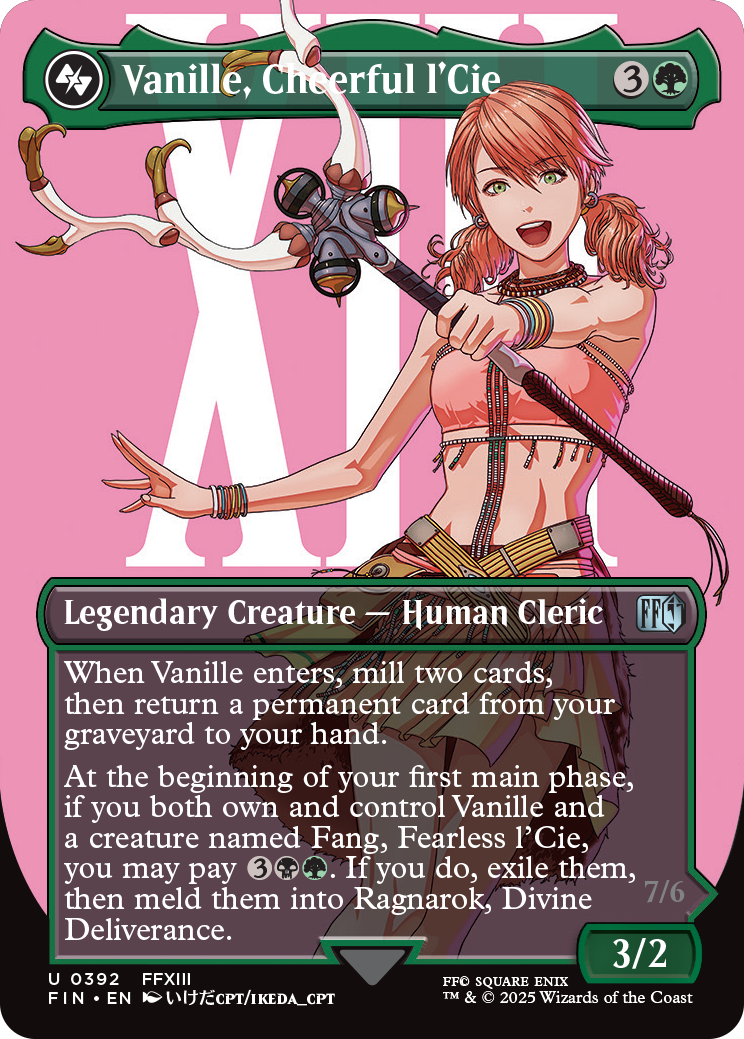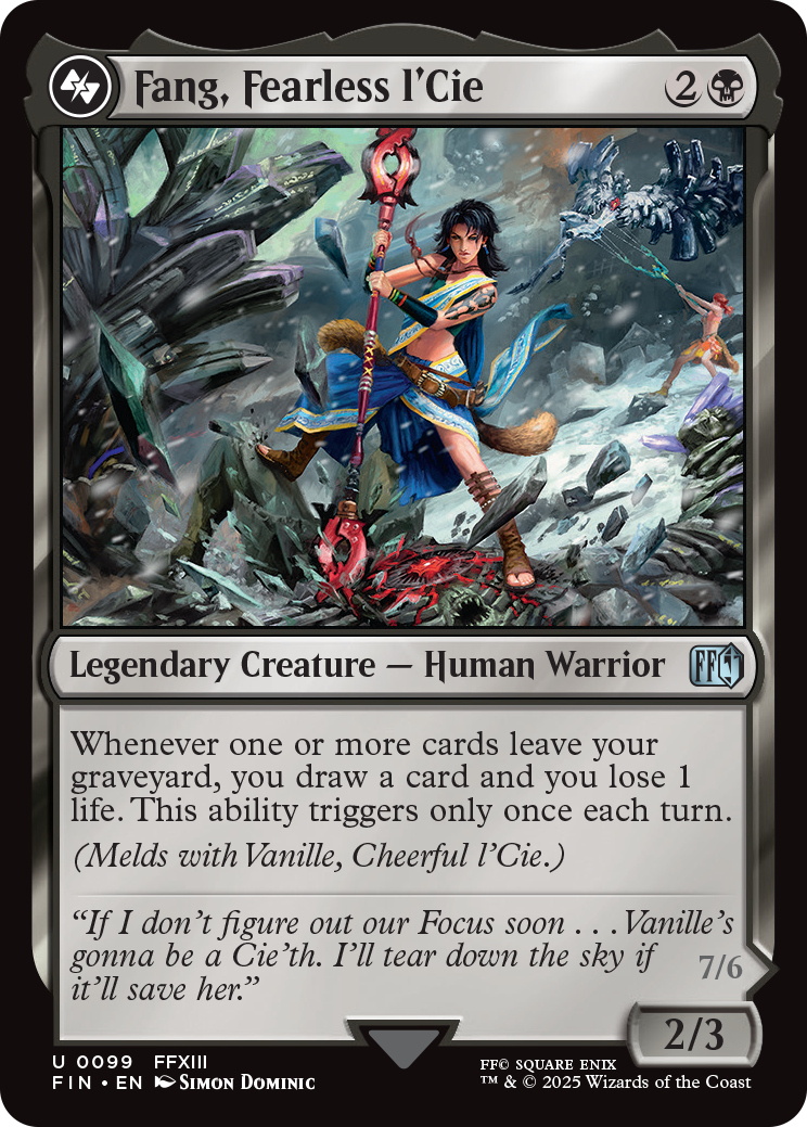 Die Verbundenheit von Fang und Vanille zeigt sich nicht nur stilistisch in den Karten, vielmehr zeigen die Karten sogar die gleiche Kampfszene, nur aus unterschiedlichen Blickwinkeln. Auch die eine Spielmechanik verbindet die Karten. „Fang und Vanille haben in Final Fantasy XIII eine so starke Beziehung zueinander, dass wir wussten, dass ihre Karten in irgendeiner Weise miteinander in Verbindung stehen müssen“, kommentiert dazu Principle Narrative Game Designer Dillon Deveney.