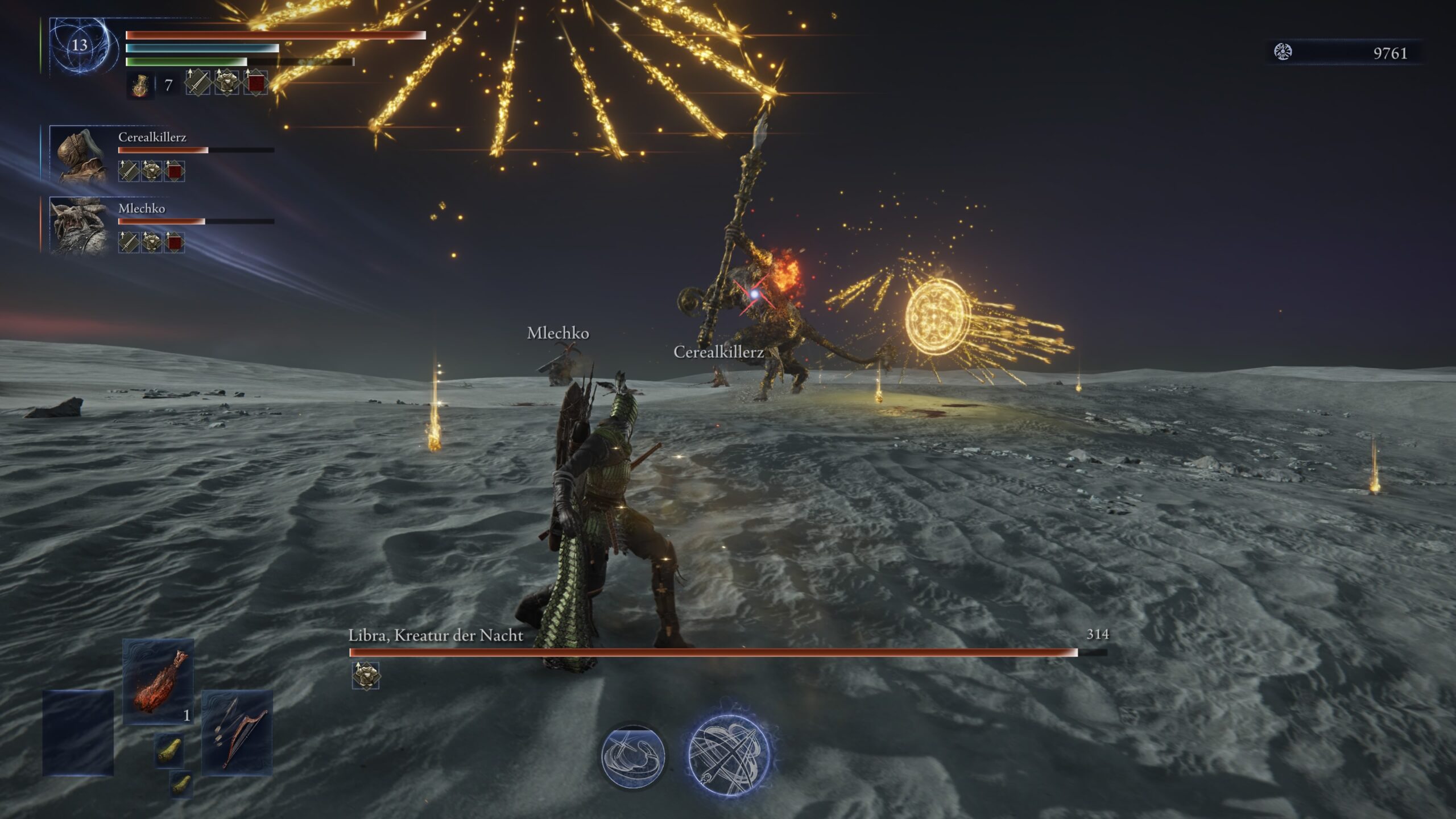 Eines haben alle Nightlords gemeinsam: Sind sie einmal nach stressiger Keilerei bezwungen, ist die Freude unwahrscheinlich groß. Im Testzeitraum jubelten wir regelmäßig gemeinsam, wenn ein neuer Superboss ins Gras biss – „Souls“-Fans ist dieses Gefühl der Euphorie wohl bekannt. Und eben dieses Gefühl resultierte dann regelmäßig in einem kollektiven „Eine Runde geht noch“; die Sogwirkung von „Nightreign“ ist erstaunlich.