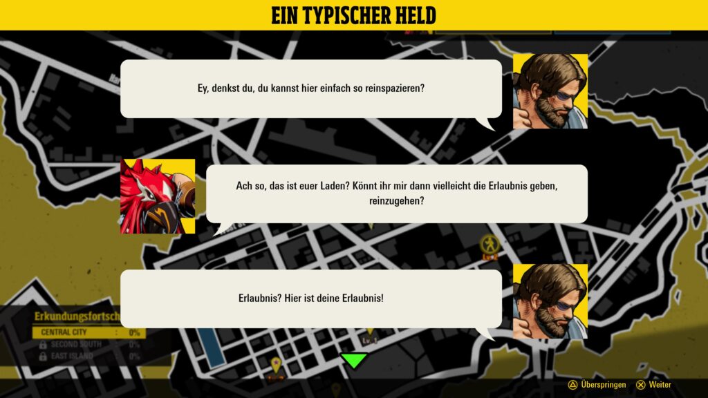 Missionen sind hier, wie erwartet, einfach Kämpfe gegen verschiedene Gegner. Manchmal sind dies generische Kämpfer oder eben auch spielbare Charaktere. Die Zeit dazwischen wird mit zahlreichen Dialogen und Hintergründen zu den einzelnen Gegenden gefüllt. Die Aufmachung hierbei ist eher minimalistisch und ohne viel Schnörkel. Allerdings werden die verschiedenen Gründe für die Massenprügelei ausgiebig erläutert.