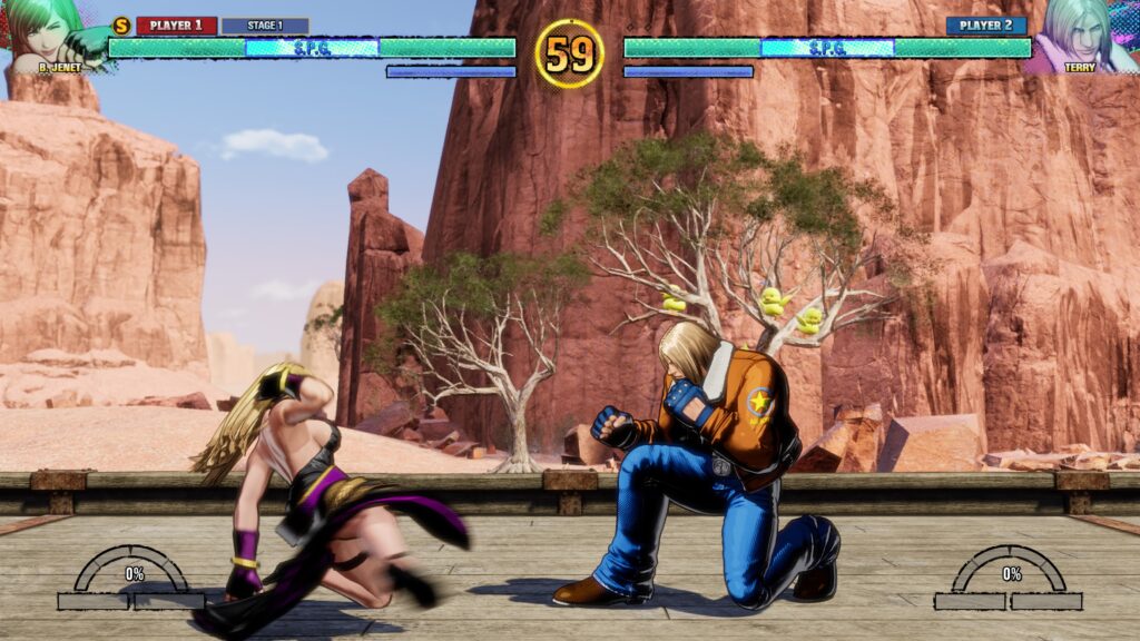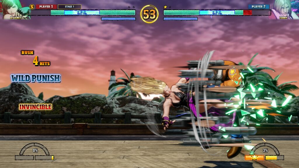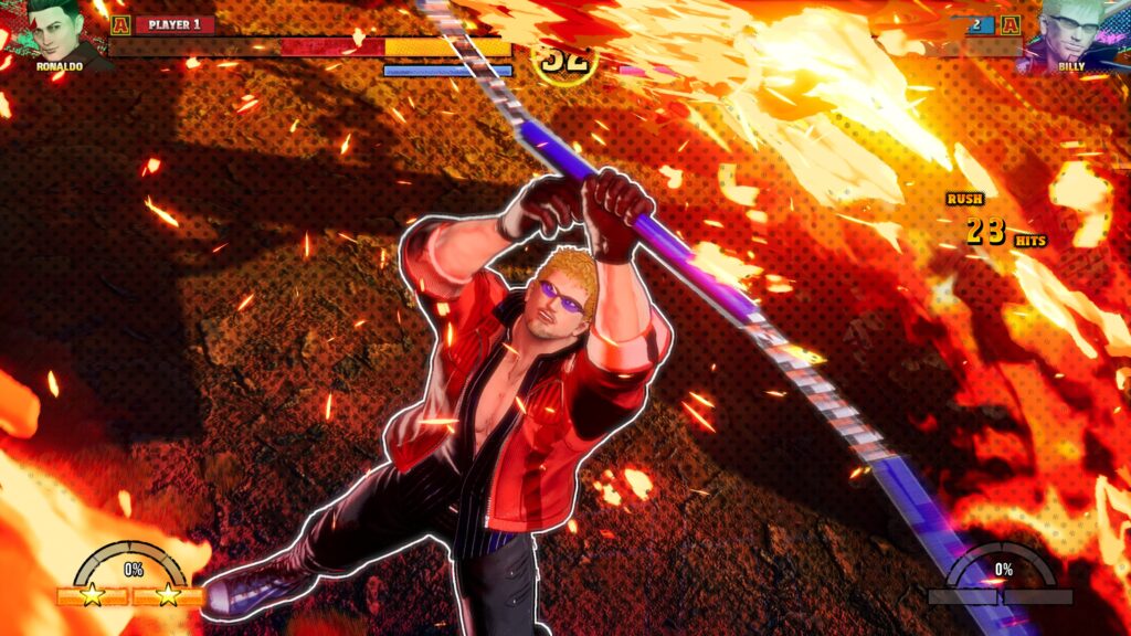 Wer also auch hier auf Abwechslung steht, der kann sich hier besonders austoben. Aus Nostalgie-Gründen muss ich aber auch noch die fehlenden Original-Kostüme von Terry Bogard und Mai Shiranui bemängeln. Diese sind zwar als DLC erhältlich, hätten aber meiner Meinung nach auch noch definitiv Platz im Basisspiel gehabt. Glücklicherweise findet Mais ikonischer Look aber auch in einem ihrer Specials ein wenig Anerkennung. Die neuen Designs sind zwar ebenso nicht schlecht, allerdings sieht Terry im Titelbildschirm für mich immer so aus, als hätte er einen enormen weißen Kinnbart. Ich kann das einfach nicht mehr ungesehen machen.