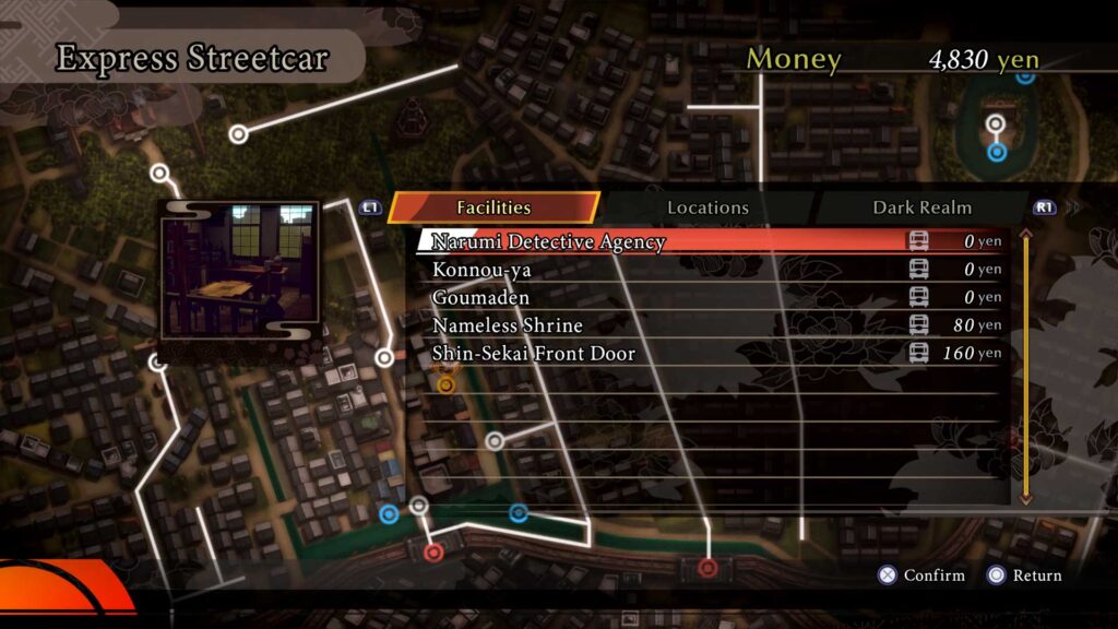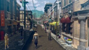 Der Ort des Geschehens ist die sogenannte „Hauptstadt“. Hier spielt sich alles ab und vermittelt die Taisho-Ära direkt auf einen Blick. Traditionelle Gebäude gepaart mit westlichem Baustil und eine Straßenbahn, die alles miteinander verbindet. Die Karte selbst ist serientypisch in der Top-Down-Perspektive gehalten mit dem ein oder anderen NPC, der als Mensch-Ärgere-Dich-Nicht-Figur dargestellt wird. Das Setting ist zum PlayStation-2-Orginal bis auf eine höhere Auflösung unverändert.
