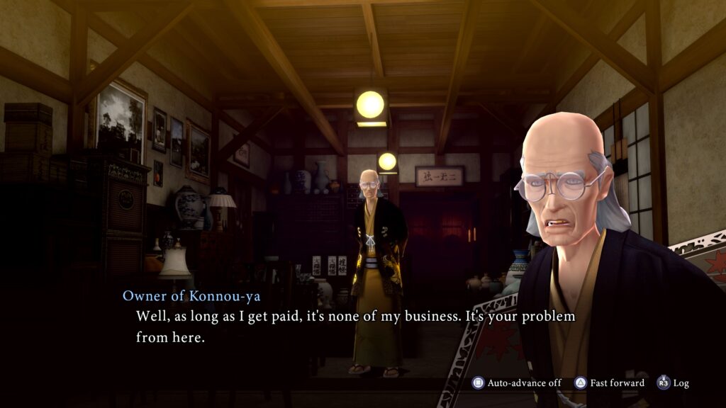 Wenn ein alter Rikscha-Fahrer sich über das steigende Aufkommen von Autos beschwert oder ausländische Händler ihre exotischen Waren anbieten, ist das nicht nur ein interessantes Setting für eine Geschichte, sondern kann auch zutiefst gesellschaftskritisch sein. Das philosophische Storytelling der Megaten-Spiele findet sich somit auch im Raidou-Ableger wieder, jedoch ohne wirklich tief in eine Sache einzusteigen. Auch die Hauptgeschichte hat letztlich nicht viel Tiefgründiges zu bieten und setzt auf eine Episoden-Struktur, die an den Aufbau einer seichten Anime-Serie erinnert.