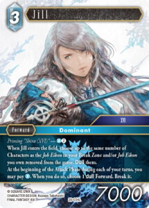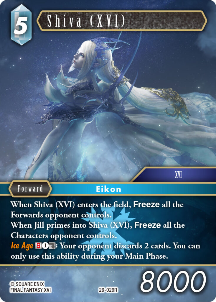 Jill [26-034L] aus Final Fantasy XVI zeigt ein neues Artwork von Kazuya Takahashi und erscheint auch in einer Full-Art-Variante. Natürlich hat Jill eine besondere Verbindung zu Shiva. Shiva (XIV) [26-029R] ist ebenfalls Teil der Erweiterung. Wie beide Karten zusammenwirken, erfahrt ihr in einem ausführlichen Blogbeitrag.