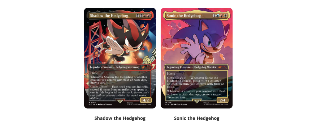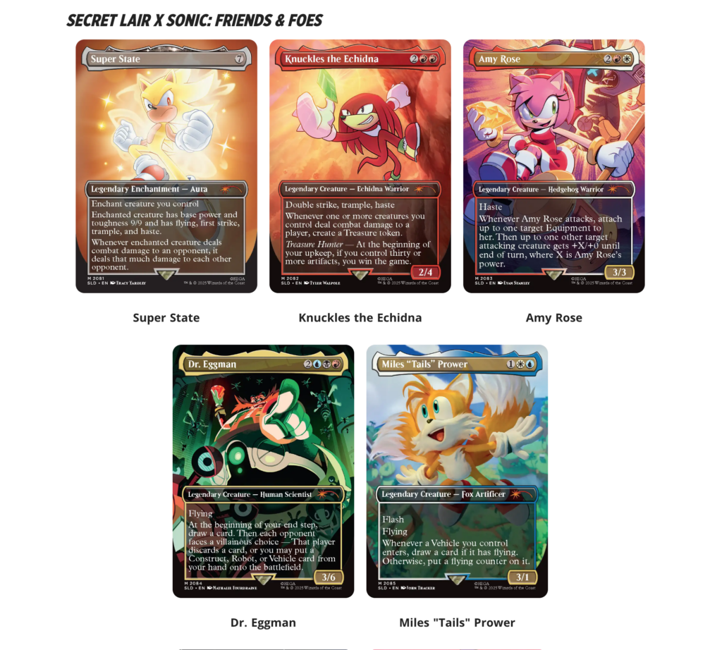Anders als das „Final Fantasy“-Crossover, das aus einem kompletten Magic-Set und vier vorgefertigten Commander-Decks besteht, folgt dieses Sonic-Crossover dem Vorbild ähnlicher Tie-ins und ist auf drei „Secret Lair“-Drops beschränkt.