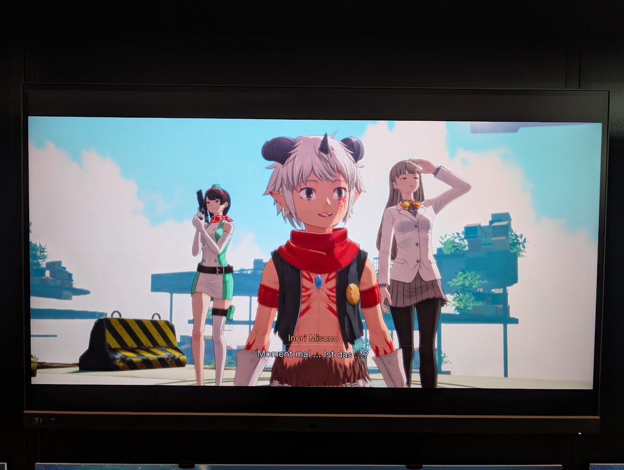 Ganze zehn Anspielstationen zu Digimon Story: Time Stranger bot Bandai Namco vor Ort an. Begrüßt wurden wir von einem Agumon-Cosplayer, der offenbar nichts durch den dicken Dinokopf sah und an der Hand durch die Menge geleitet werden musste. An der Station mit PS5-Controllern wurden wir in einem aufwändig gestalteten Startbildschirm gefragt, ob wir in die Abenteuerherausforderung in der Zentralstadt oder die Bosskampfherausforderung gegen Parrotmon spielen wollen. Selbstverständlich gab es da nur eine richtige Wahl: beides!