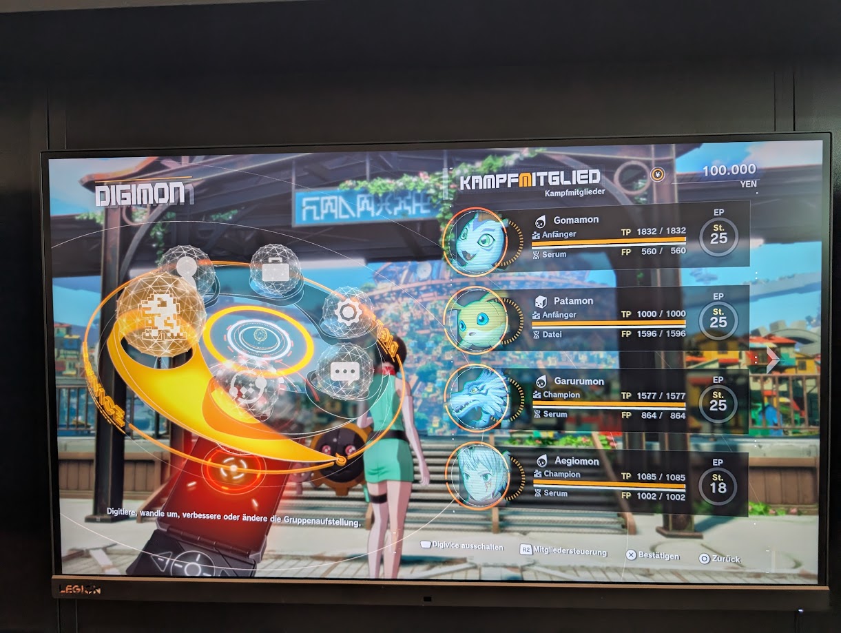 Auf der anderen Seite ermöglicht die neu gewonnene Hardwarepower, dass wir direkt auf dem Zentralplatz von einer mittleren zweistelligen Anzahl an Digimon begrüßt werden. Davon haben fast alle eigene Dialogoptionen. Das scheint auch die große Stärke des neuen Digimon-Spiels zu sein: Die Entwickler sprechen von 450 unterschiedlichen Digimon sowie dem Fokus auf deren Animationen, insbesondere im Kampf.