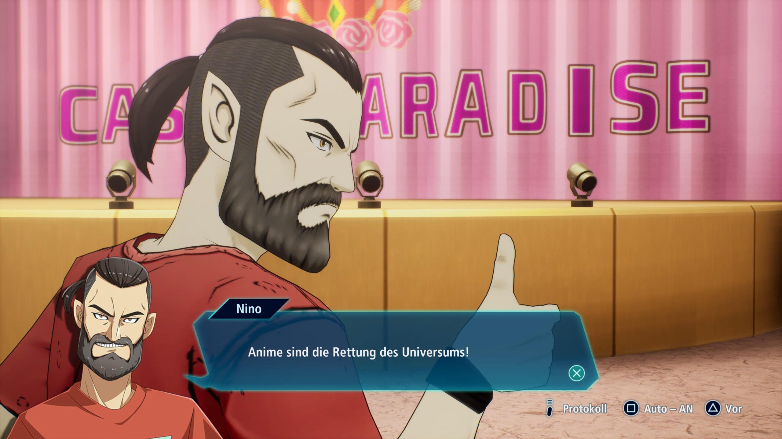 So haben unter anderem die Foote Brothers eigene 3D-Charaktermodelle erhalten, obwohl sie im Original nicht so viel Bildschirmzeit besitzen. Man darf sogar gegen die beiden kämpfen. Und das ist nicht nur bei diesen beiden Charakteren so. Gerade bei Anime-Videospielumsetzungen bin ich deutlich Schlechteres gewöhnt, wenn Charaktere beispielsweise nur aus dem Off zu hören sind oder lediglich lieblose 2D-Modelle mit ein paar Sprechblasen erhalten. Umso mehr hat es mich gefreut, Charaktere und auch passende Outfits aus dem Original zu sehen. Dadurch wirkt das Spiel an der einen oder anderen Stelle originalgetreu-authentisch.