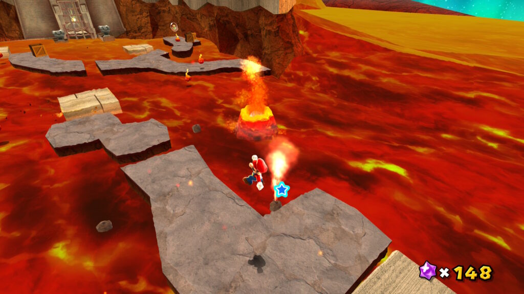 Ihr müsst also springen, zielen und dann abschießen – alles innerhalb von einer Sekunde. Im normalen Spiel mit dem Joy-Con und dem Pointer kein großes Ding. Im Handheld-Modus jedoch ein unspaßiger Krampf, der einfach nicht funktioniert. Letztendlich liegt das aber einfach an der Art und Weise, wie Super Mario Galaxy aufgebaut ist. Es ist einfach nicht für ein Spielen ohne richtige Pointer-Steuerung gedacht und das merkt man in diesem Moment ganz arg.