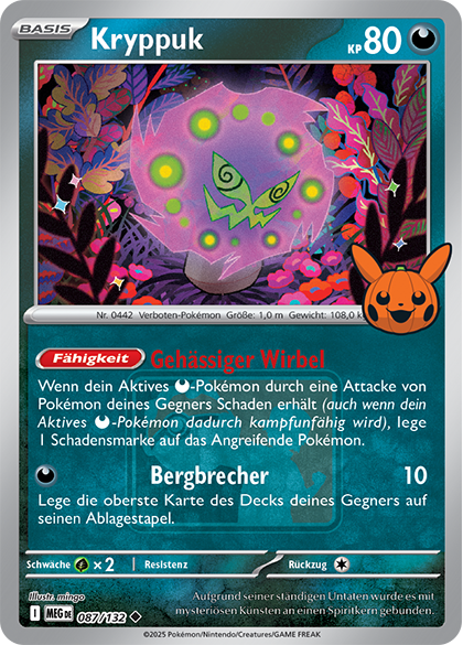 Ob Nebulak, Lunala oder Zwirrklop, das Pokémon-Sammelkartenspiel bietet genug gruselige Auswahl. Zu Pokéween darf diesmal aber Kryppuk auf die Karte. Die besondere Promo-Karte bekommt eine schaurige Prägung, was sie erst zur begehrten Sonderkarte macht.