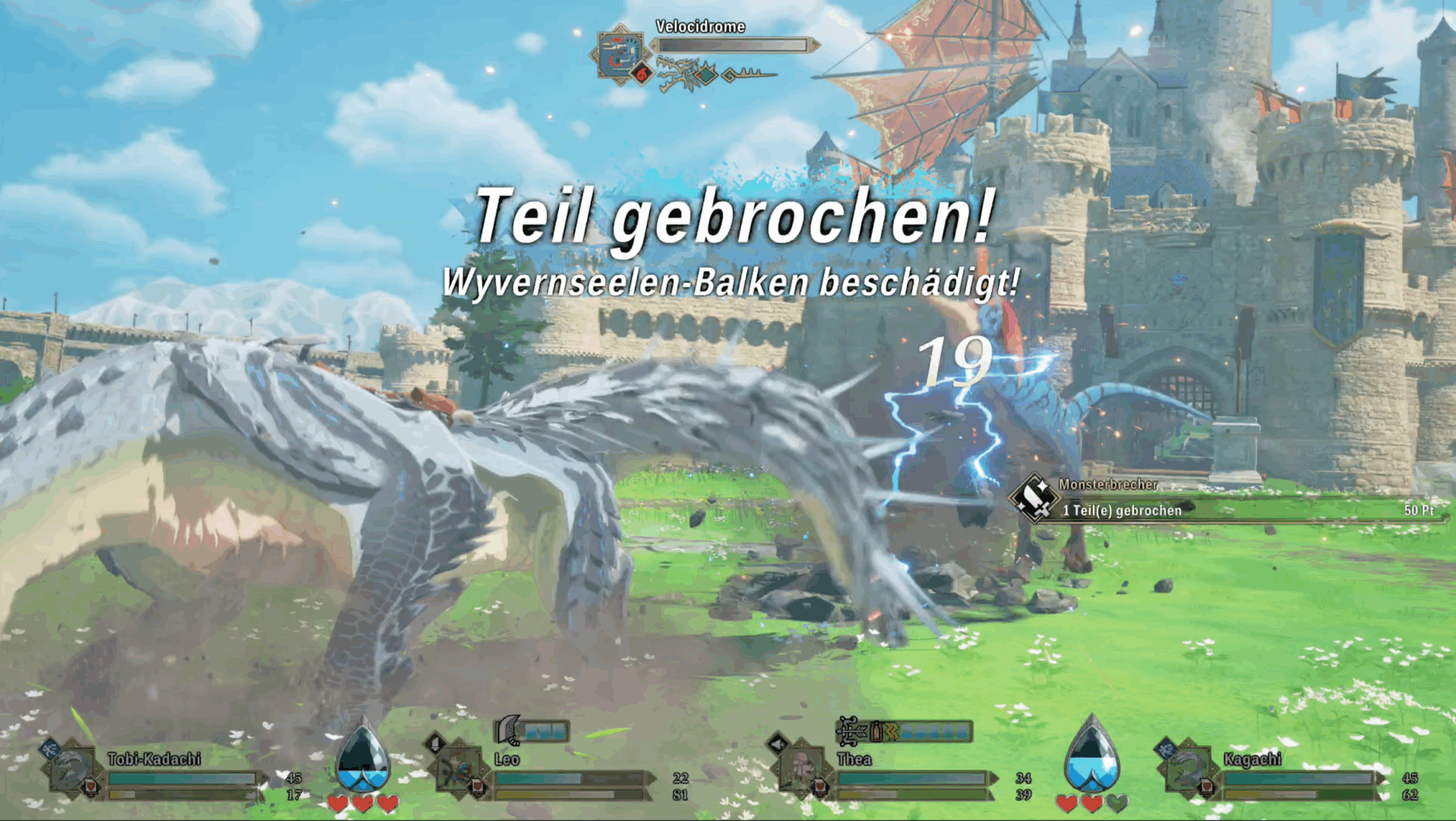 Es gilt also, die Kristalle ins Visier zu nehmen, um diesen Abwehrmechanismus auszuhebeln. Dazu steigen wir im Kampfverlauf sogar auf den Rücken unserer Monsties, um ordentlich zuzulangen. Bringen wir das Chatacabra dann noch zum Taumeln, setzen wir zum verheerenden – und mächtig schick inszenierten – Synchronsturm an.