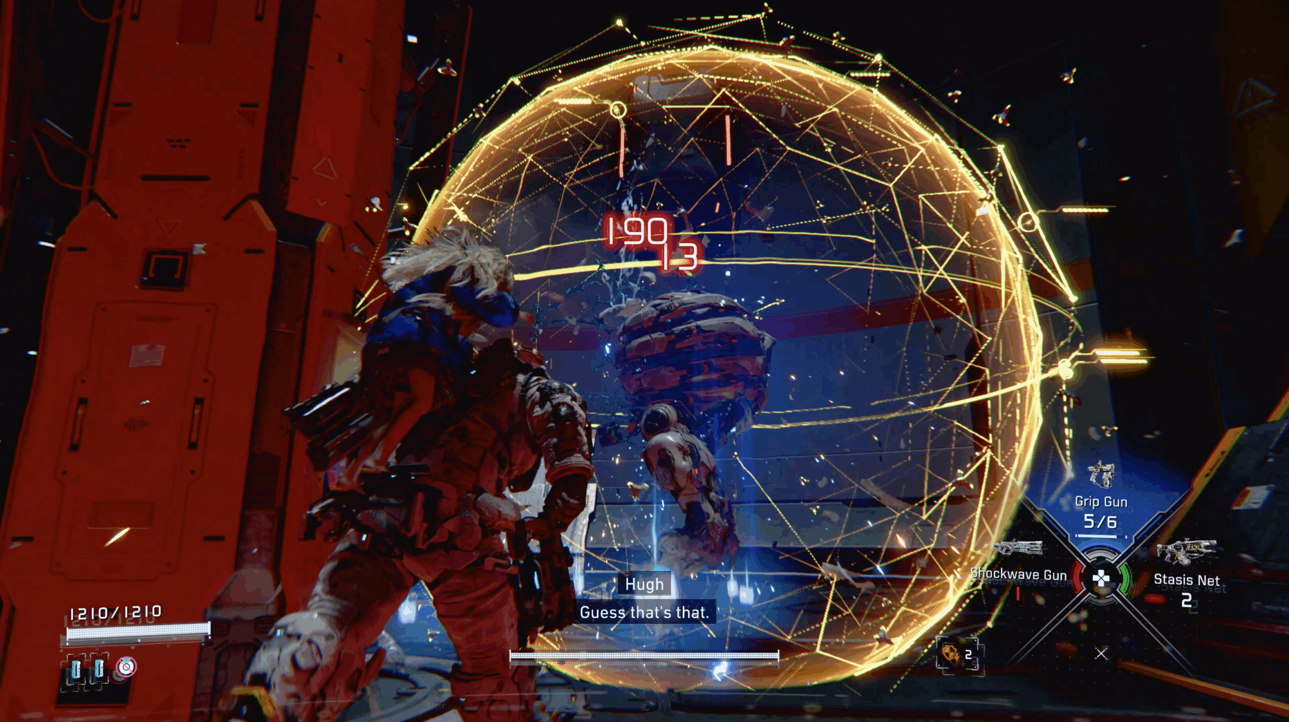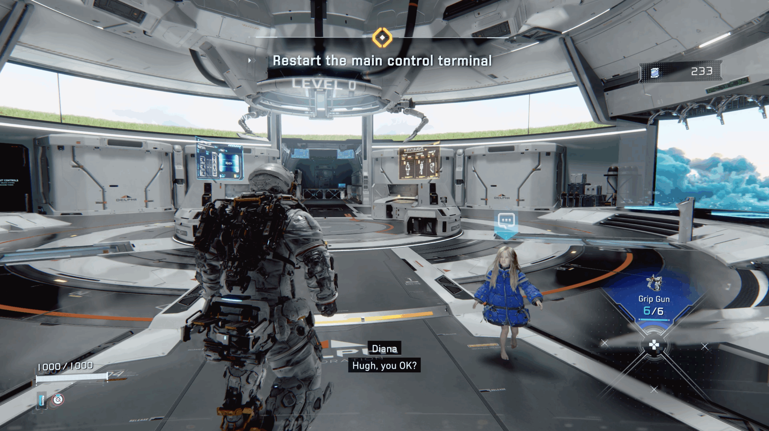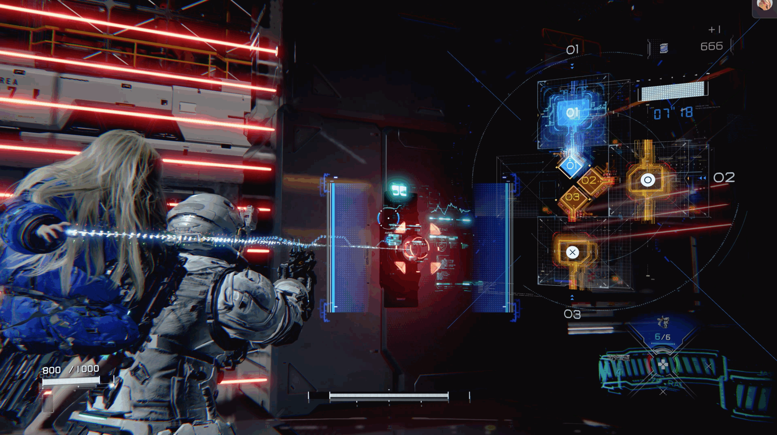 Bringen wir das nötige Kleingeld in Form von Lunafilament mit, können wir unsere Zweitwaffen sogar schrittweise verbessern. Aber auch Elemente wie die Anzahl unserer Ausweichschübe und Effektivität unserer Medikits können nach und nach ausgebaut werden. Ebenso wichtig: Auf der Erkundung erbeutete Komponenten tauschen wir gegen nützliche Upgrades unseres Anzuges, unserer Hauptwaffe oder auch Dianas Hacking-Fähigkeiten ein.