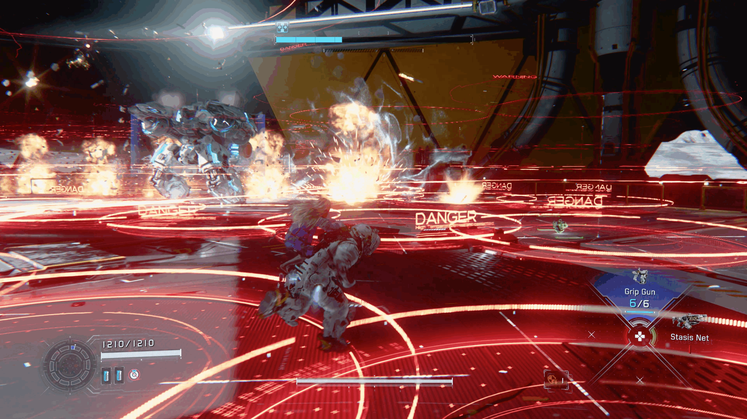 Dass das Feilen an unserer Ausrüstung nicht nur eine optionale Spielerei, sondern vielmehr überlebenswichtig ist, bewies dann die Erforschung des vermeintlich bekannten Demo-Bereichs. Seit unserem letzten Erkundungsgang nahm das Entwicklerteam diverse Anpassungen vor, die vor allem in einem deutlich knackigeren Schwierigkeitsgrad resultierten. Unsere blechernen Feinde schlugen merklich härter zu und überraschten uns mit manch fieser Konstellation. Gingen wir zunächst noch überbordend selbstbewusst in die Hands-on-Session, lehrten uns so gerade die vermeintlich harmlosen Gegner flott neuen Respekt.