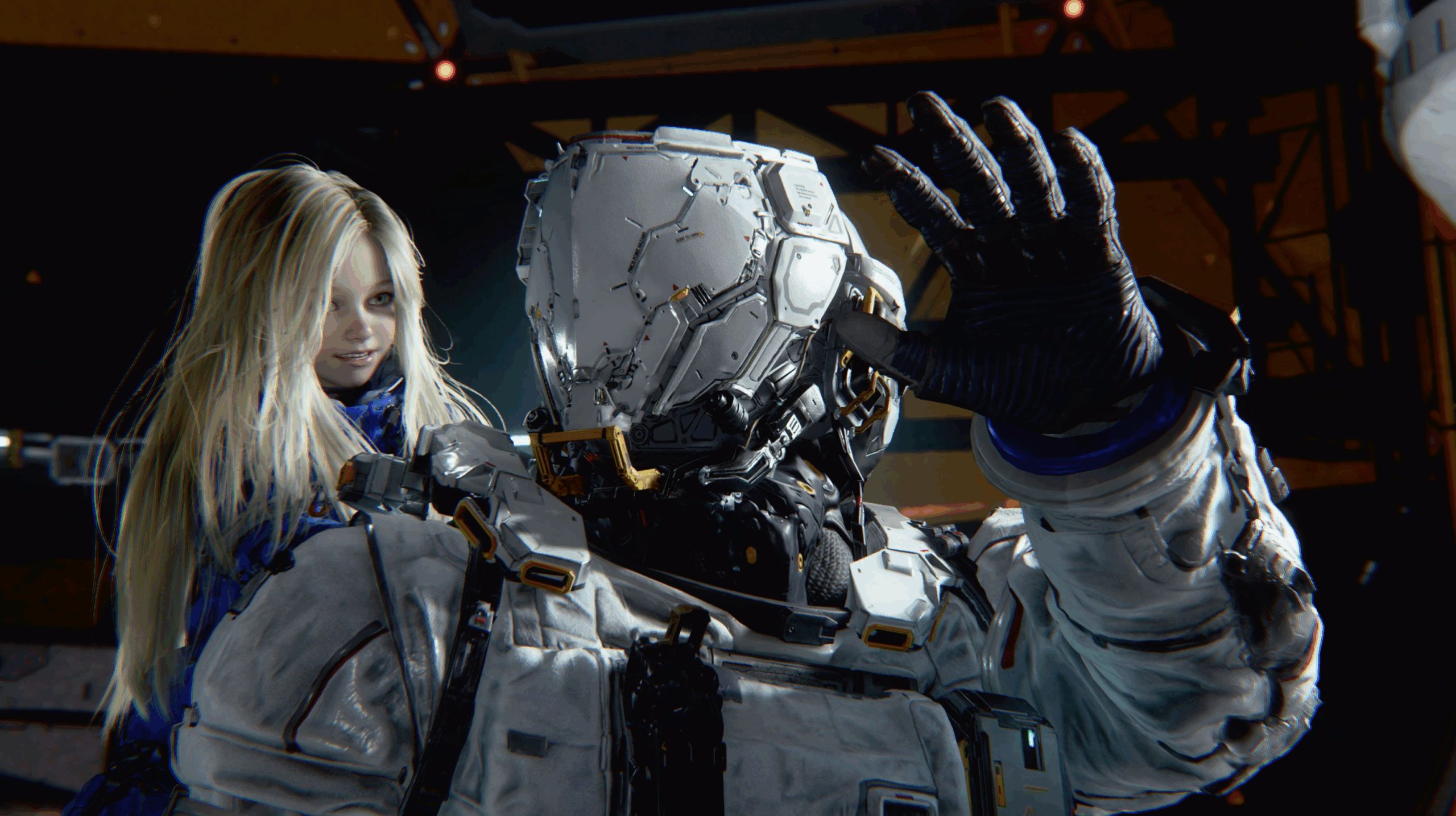 Ihr erinnert Euch: In PRAGMATA übernehmen wir die Rolle von Hugh Williams. Als Teil eines Aufklärungsteams ist es eigentlich seine Aufgabe, die Umstände für den plötzlichen Kontaktabbruch einer Forschungseinrichtung auf dem Mond aufzuklären. Einmal dort angelangt, hinterlässt ihn ein Beben aber verletzt und von seinem Team abgeschnitten.