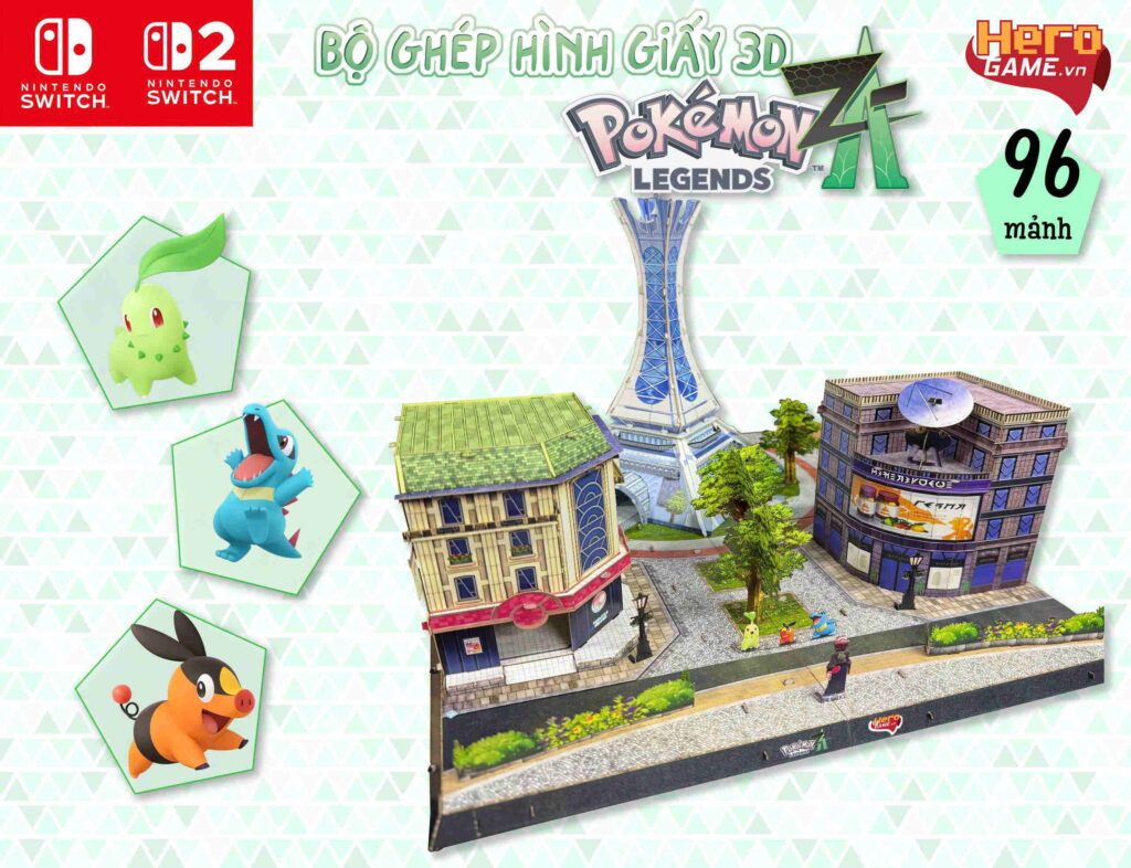 Exklusiv für Vorbesteller in Vietnam gibt es ein detailliertes 3D-Diorama von Illumina City. Das Modell zeigt zwei Gebäude, eine kleine Plaza samt Prismaturm im Hintergrund sowie einen Trainer, der den drei Starter-Pokémon von Z-A gegenübersteht.