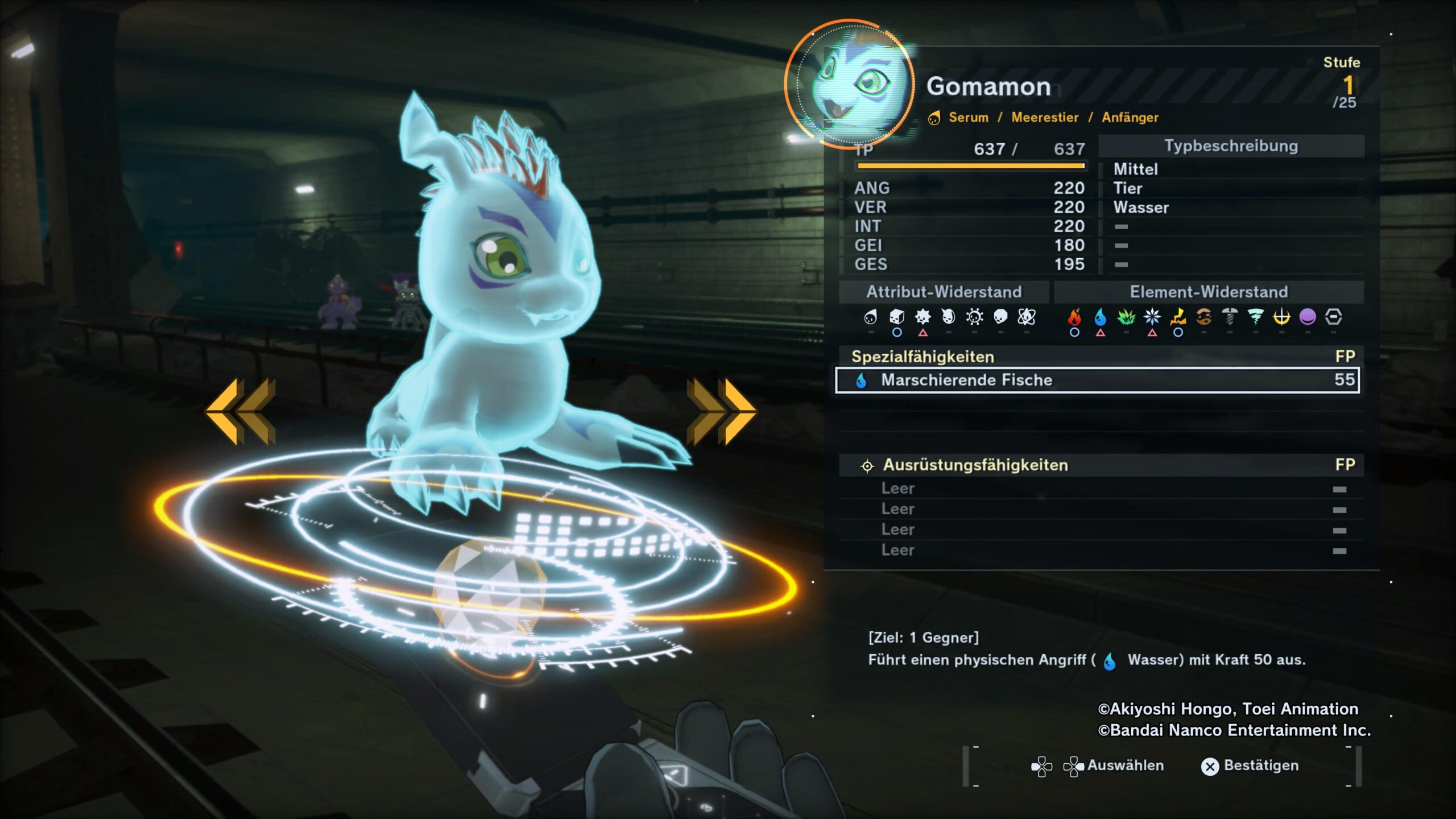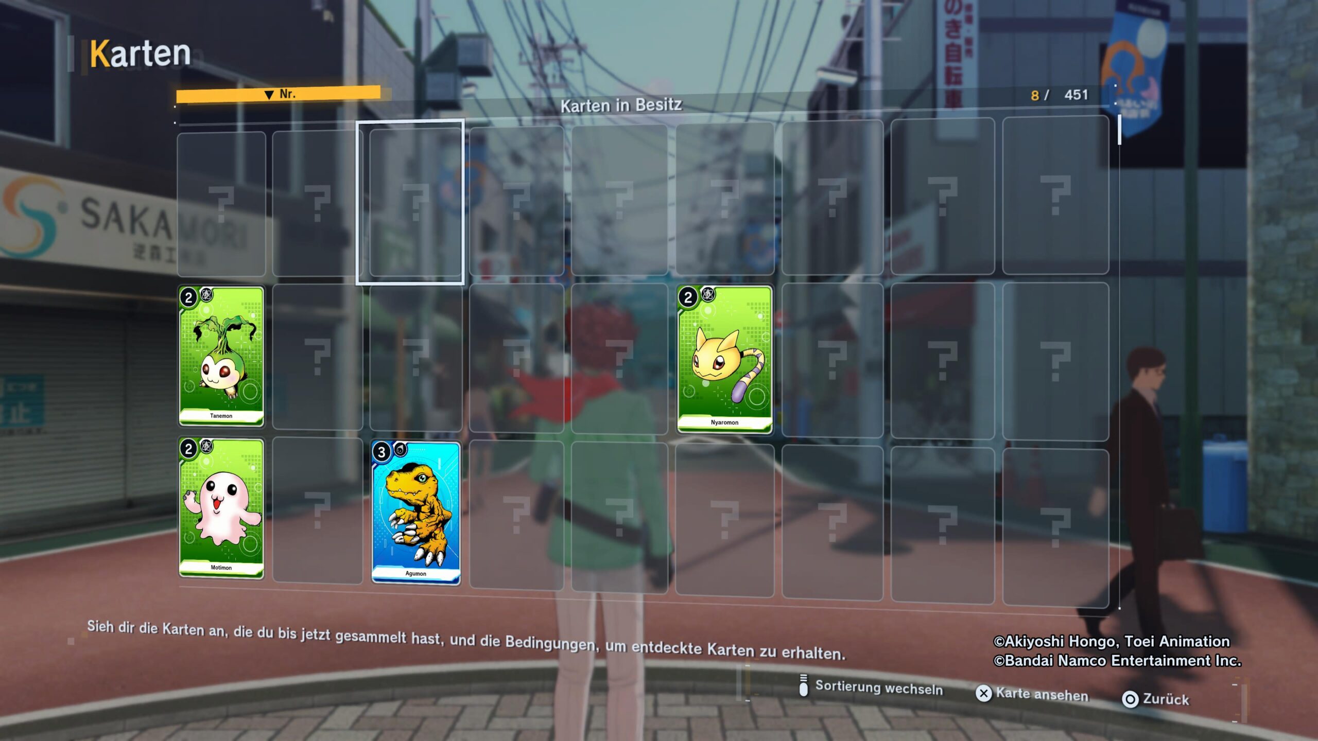 Da der Charakter jedoch keinen Ton von sich gibt, obwohl sich der Mund bewegt, und man stattdessen lediglich die jeweiligen Sätze auswählen kann, ging für mich etwas von der Stimmung verloren. Schließlich haben die Hauptcharaktere theoretisch eine Synchronstimme. Diese ist zu hören, wenn der jeweilige Gegenpart als Operator bzw. Operatorin mit ihm Kontakt aufnimmt. Ein sprechender Hauptcharakter wäre also möglich gewesen. Immerhin wird die Beziehung zu den Partner-Digimon mittels entsprechendem Bindungswert angezeigt. Doch wie erhält man eigentlich die passenden Digimon?