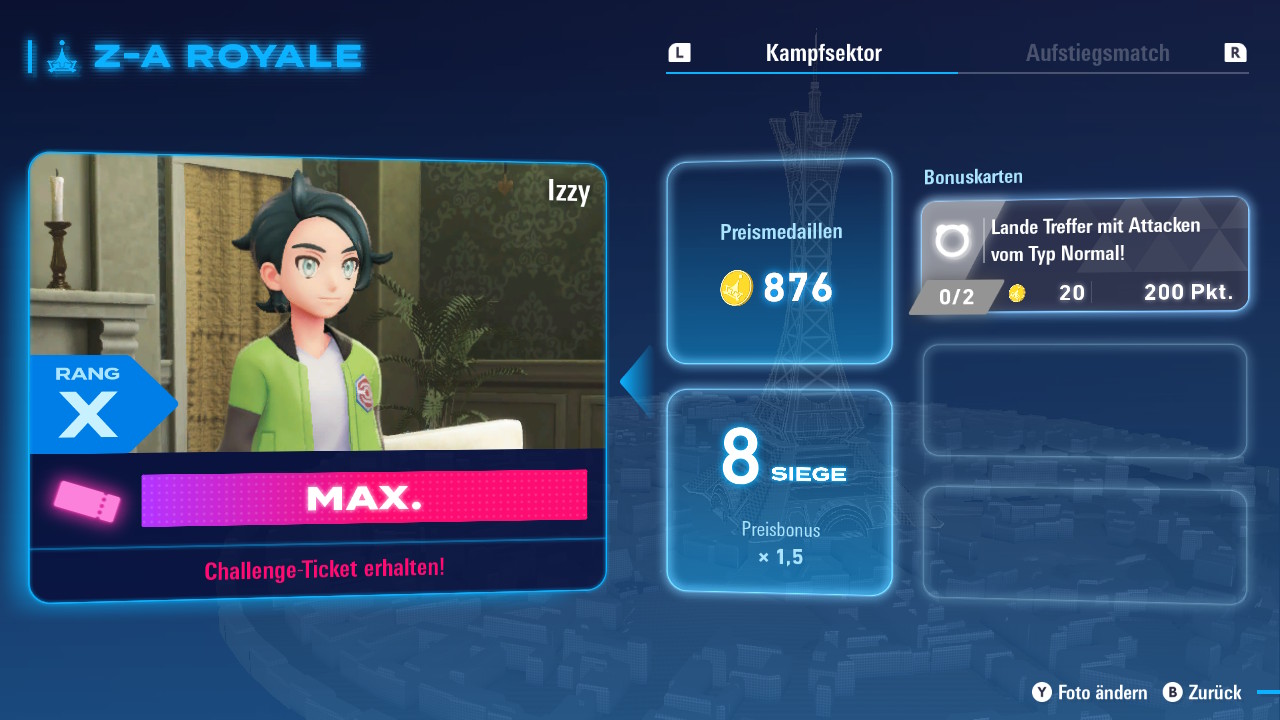 Um der Situation Herr zu werden, hat die Quazar Corporation das Z-A Royale ins Leben gerufen, um einen Meister der Mega-Entwicklung zu finden. Bei diesem Wettkampf treten Trainer mit ihren Pokémon in Kampfzonen gegeneinander an, um Rangpunkte zu sammeln. Mit ausreichend Punkten dürft ihr dann ein Aufstiegsmatch wagen, um im Rang aufzusteigen. Dabei lernt man auch den vollen Umfang des neuen Kampfsystems kennen.