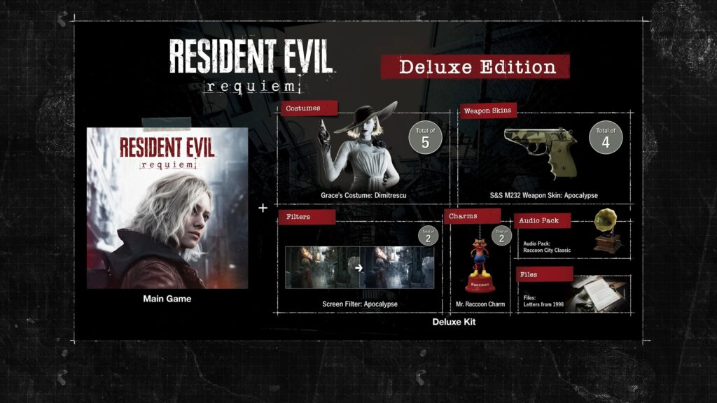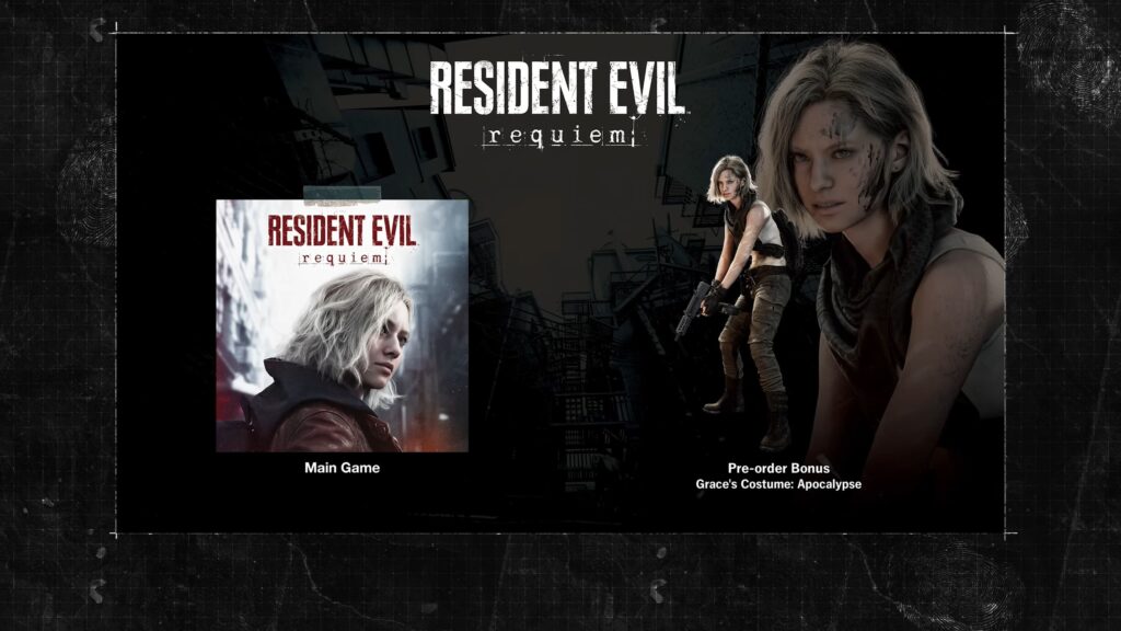 Resident Evil Requiem erscheint am 27. Februar 2025 für PS5, Xbox Series, PCs bei Steam und im Epic Games Store und Nintendo Switch 2. Vorbestellungen enthalten Graces grimmiges Kostüm „Apokalypse“ als Bonus. Zusätzlich zur Standardedition und der Deluxe Edition wird es auch eine Deluxe Steelbook Edition im Handel geben.