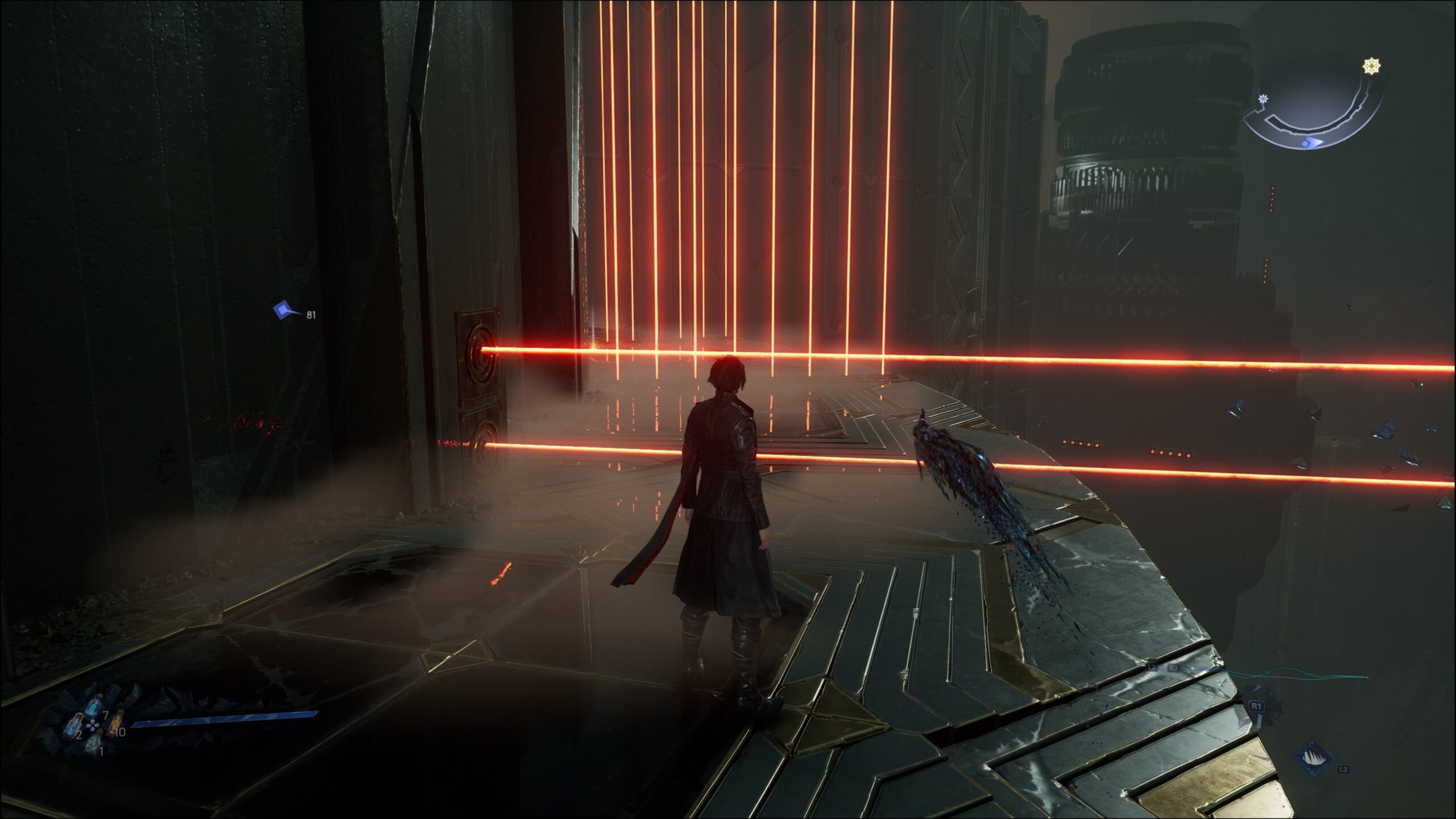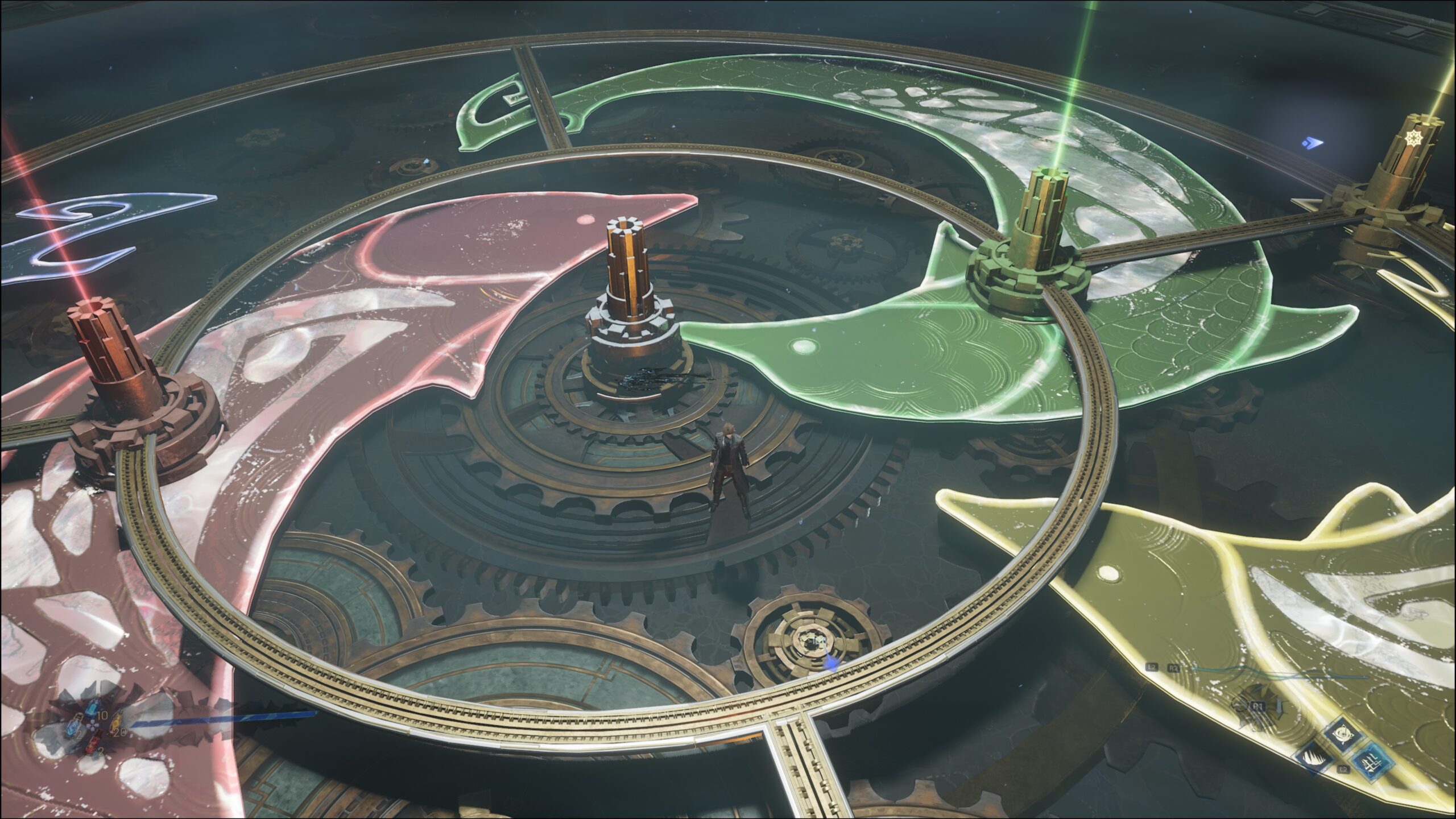 Wenn ihr euch nicht gerade durch Gegner und große Bosse schnetzelt, werdet ihr entweder mit Rätseln oder Sprungpassagen beschäftigt sein. Letztere können manchmal etwas unpräzise sein, gerade wenn einem noch bestimmte Fähigkeiten fehlen und man sich auf den Standardsprung verlassen muss. Selten müsst ihr auch bestimmte Passagen unter Zeitdruck absolvieren, diese sind aber fair gestaltet. Manchmal können sie etwas knifflig sein, wenn ihr z. B. Laserstrahlen auf sich bewegenden Plattformen ausweichen müsst. Manchmal meint man in einem Jump & Run zu sein, bis man dann wieder in ein Kampfareal mit einem Boss kommt.