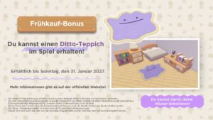 In einem Mehrspielermodus können insgesamt bis zu vier Freunde gemeinsam spielen. GameShare wird unterstützt, sodass ihr mit einer anderen Person spielen könnt, die das Spiel nicht besitzt. Frühkäufer freuen sich über einen Ditto-Teppich als Deko-Element.