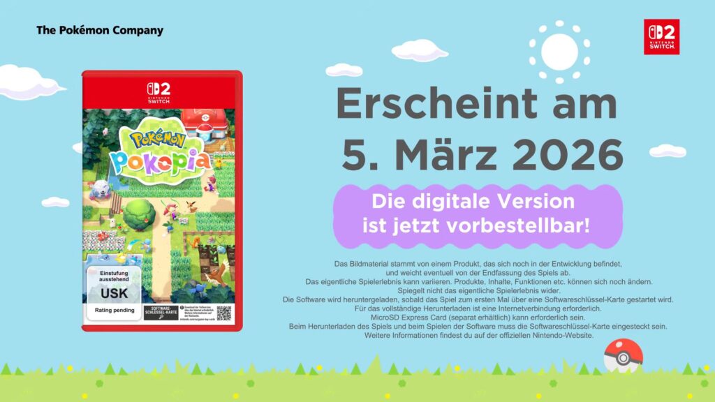 Pokémon Pokopia erscheint am 5. März 2026. Die Handelsversion (Game Key Card) ist bei Amazon* bereits vorbestellbar. Ein 10 GB großer Download wird fällig, wenn ihr euch für diese Version entscheidet. Den gibt’s beim Kauf im Nintendo eShop freilich auch.
