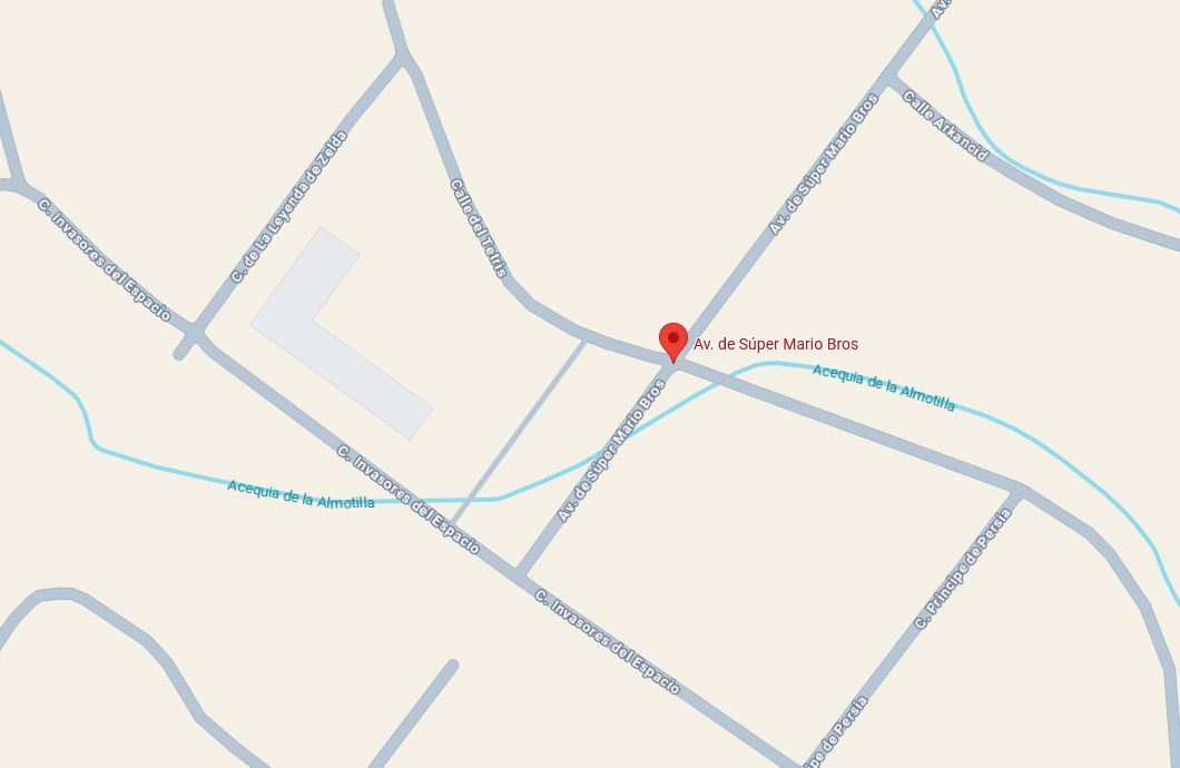 Hier eine kleine Auswahl der Straßennamen: Avenida de Super Mario Bros., danach folgten unter anderem Calle Sonic el Erizo, Calle de la Leyenda de Zelda, Calle del Tetris, Calle de Fantasía Final, Calle Príncipe de Persia, Calle Gran Turismo, Calle los Sims und Calle Arkanoid.