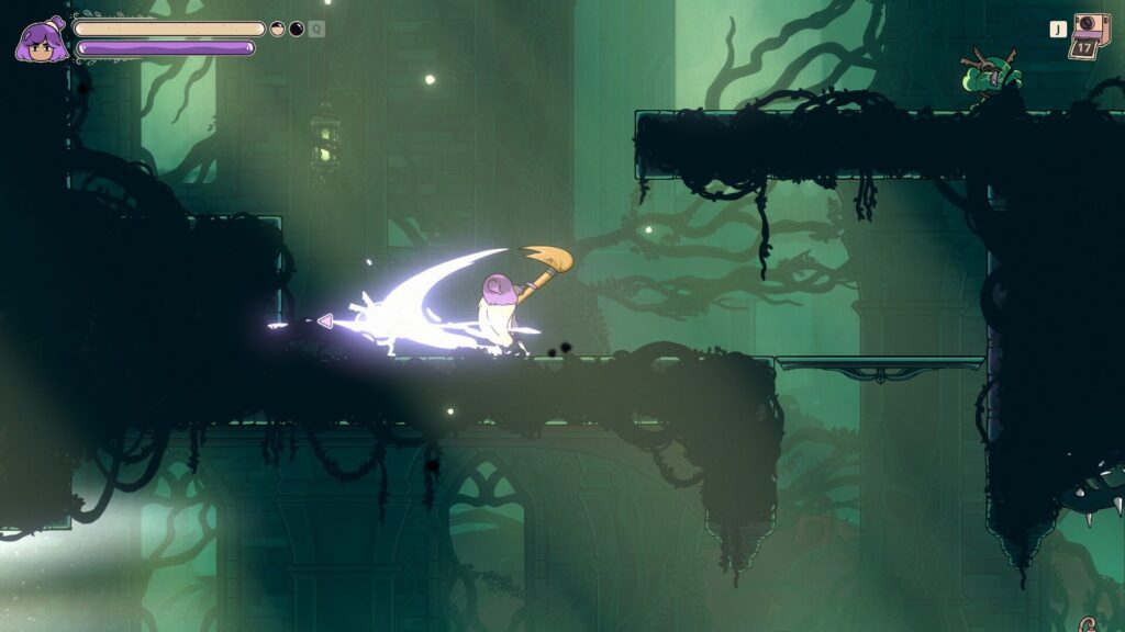 Dort angekommen teilt ihr der Bürgermeister jedoch mit, dass der Express außer Betrieb ist, da er von magischen Fäden festgehalten wird. Also macht sich Constance auf die Suche nach einer Lösung durch die verworrenen Gänge und Hindernisse. Dabei verarbeitet sie seelische Traumata wie Depressionen, Burnout und Angststörungen. Diese kommen vor allem in den Zwischensequenzen zum Tragen, daher hier eine Warnung an euch, falls euch solche Themen belasten.