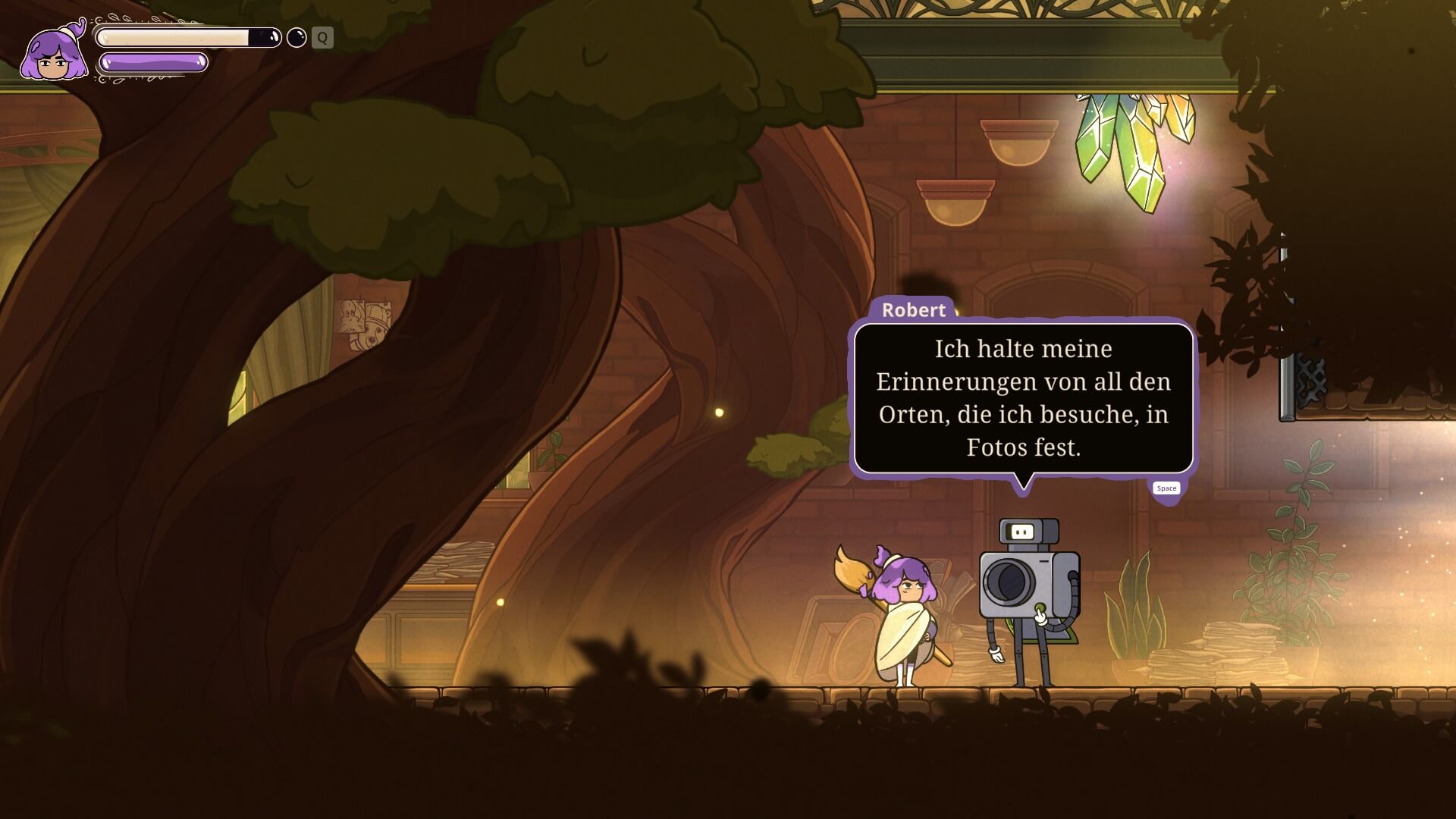 Dort angekommen teilt ihr der Bürgermeister jedoch mit, dass der Express außer Betrieb ist, da er von magischen Fäden festgehalten wird. Also macht sich Constance auf die Suche nach einer Lösung durch die verworrenen Gänge und Hindernisse. Dabei verarbeitet sie seelische Traumata wie Depressionen, Burnout und Angststörungen. Diese kommen vor allem in den Zwischensequenzen zum Tragen, daher hier eine Warnung an euch, falls euch solche Themen belasten.