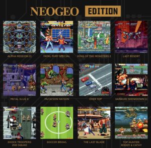 Die Spielauswahl des NeoGeo-Handhelds ist, man hätte es erwarten können, natürlich sehr Arcade-lastig. Typisch NeoGeo eben. Neben absoluten Arcade-Klassikern wie Metal Slug X, Blazing Star, Fatal Fury, Samurai Shodown II und The Last Blade sind auch etwas speziellere Titel wie King of the Monsters 2, Mutation Nation und Soccer Brawl enthalten. Insgesamt 14 Spiele befinden sich bereits vorinstalliert auf dem Handheld.
