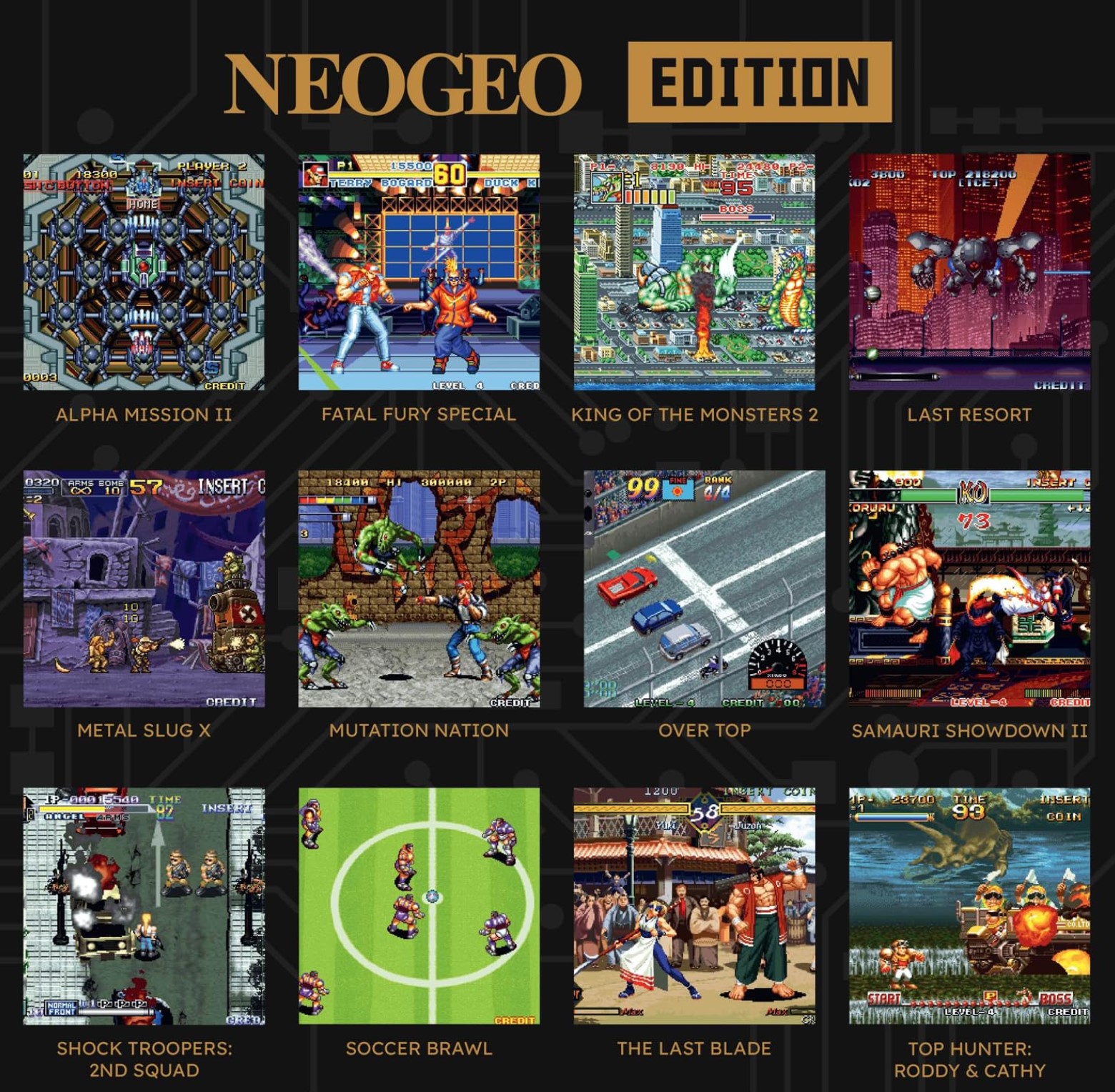 Die Spielauswahl des NeoGeo-Handhelds ist, man hätte es erwarten können, natürlich sehr Arcade-lastig. Typisch NeoGeo eben. Neben absoluten Arcade-Klassikern wie Metal Slug X, Blazing Star, Fatal Fury, Samurai Shodown II und The Last Blade sind auch etwas speziellere Titel wie King of the Monsters 2, Mutation Nation und Soccer Brawl enthalten. Insgesamt 14 Spiele befinden sich bereits vorinstalliert auf dem Handheld.
