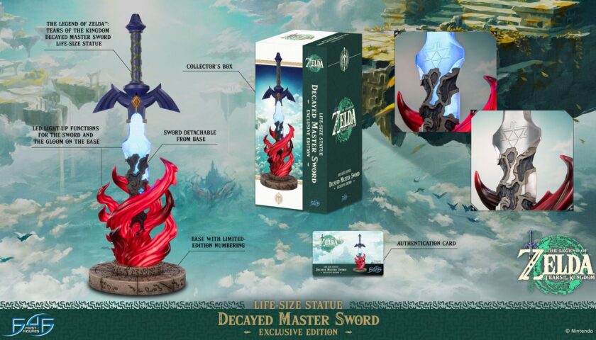 Gute Nachrichten für alle Sammlerinnen und Sammler, die sich ein bisschen mehr dunkles Miasma ins Wohnzimmer holen wollen: First 4 Figures, bekannt für seine hochwertigen und großformatigen Statuen, bringt das vom Miasma zerfressene Mastersword aus Zelda: Tears of the Kingdom als lebensgroße Nachbildung heraus.