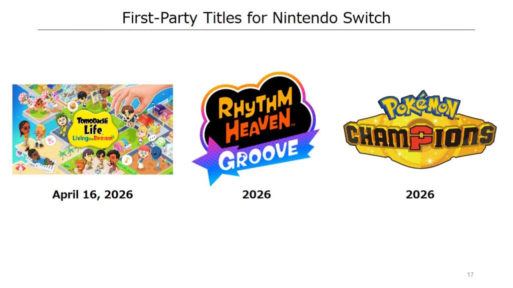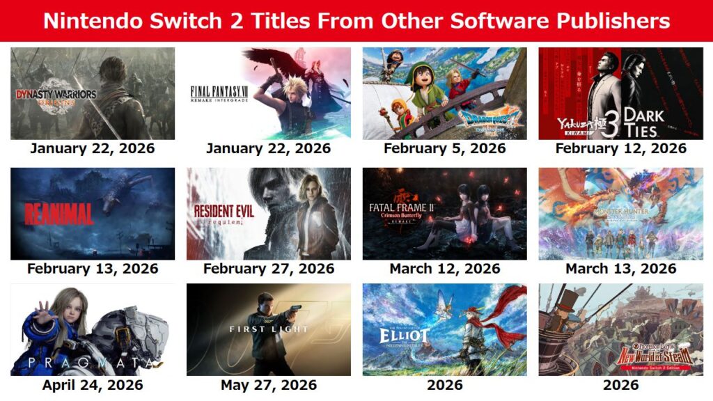 In den Slides aus dem Geschäftsbericht visualisiert Nintendo auf einer Folie auch die unmittelbar bevorstehenden Third-Party-Veröffentlichungen für Nintendo Switch 2, darunter Resident Evil Requiem, Pragmata und 007: First Light. Nachfolgend Screenshots der Folien. Den Geschäftsbericht findet ihr hier.