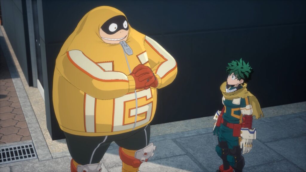 Beim Erkunden der Stadt könnt ihr die verschiedenen Studenten der Klasse 1-A aus My Hero Academia nach und nach freischalten und nutzen. Das Umherlaufen mit den Figuren hat echt Spaß gemacht. Deku kann sich mit seinen Peitschen wie Spider-Man durch die Gegend schwingen, während Shoto auf Eisbahnen schlittert. Während Minoru Mineta vielleicht nervig ist, so kann er zum Beispiel immerhin Wände hochklettern. Charaktere ohne große Bewegungsfähigkeiten geben euch andere Boni. So könnt ihr mit manchen Figuren dann alle Nebenmissionen auf der Karte sehen. Das hilft, wenn ihr alle Missionen absolvieren wollt pro Mission, für den höchstmöglichen Rang. Denn sonst müsst ihr diese mühevoll suchen.