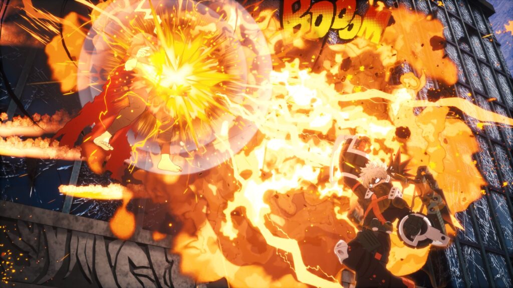 Alle davon haben vier Spezialangriffe, welche ihre ganz speziellen Quirks verwenden – auf Deutsch Spezialität genannt. Diese lassen sich in normale Angriffsketten einbinden. Manche der Spezialangriffe haben unterschiedliche Effekte, je nachdem ob ihr sie aufladen könnt oder nicht. Während Deku mit One For All vor allem die Peitschen-Spezialität verwendet, um Feinde zu greifen und ordentlich draufzuhauen, nutzt ein Bakugo natürlich gigantische Explosionen oder Fernangriffe.