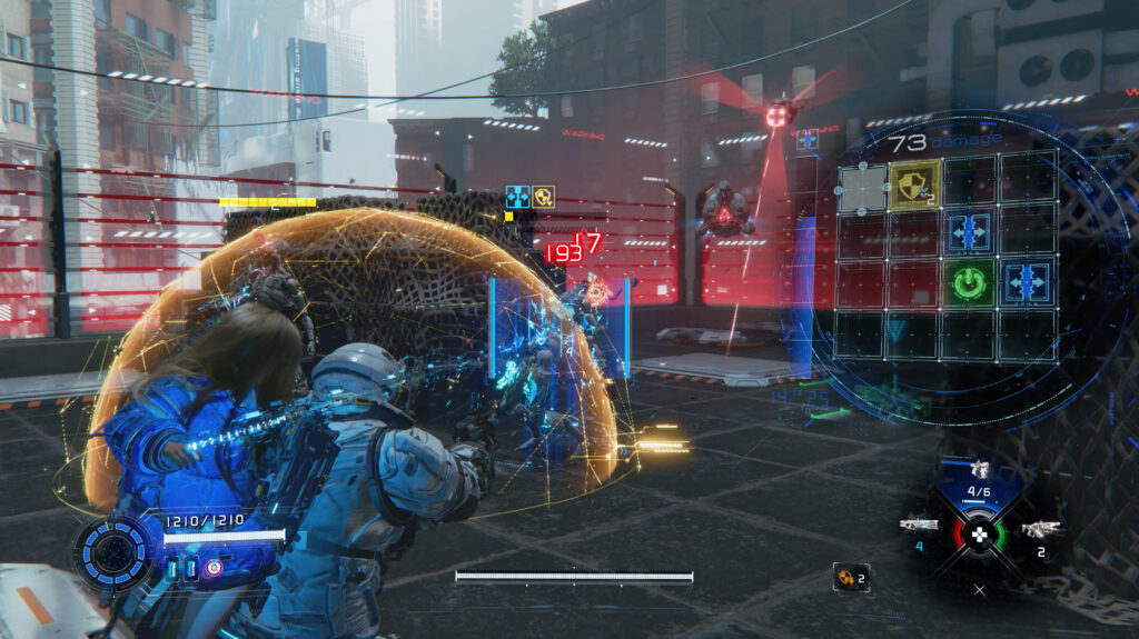 Bitten unterschiedliche Gegnertypen in Echtzeit um individuelle Herangehensweisen bei ihrer Bekämpfung, sorgt das im besten Sinne für elektrisierenden Stress. Flinkes Taktieren und noch flinkere Reaktionen werden in diesen Situationen zur Voraussetzung, um heil davonzukommen. Wie gut also, dass uns diverse neue Werkzeuge an die Hand gegeben werden, um am längeren Hebel zu bleiben. Da wären etwa Multihack-Dioden, die unsere Hacks auf nahe gelegene Feinde weiterspringen lassen.