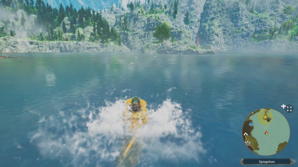 Eine nette Spielerei ist auch, dass Monster ihren Atem einsetzen können, sofern sie über diese Fähigkeit verfügen. Damit lassen sich große Sammelpunkte oder Mauern zerstören. All das vermittelt das Gefühl, auf einem kleinen Parcours unterwegs zu sein, auf dem mal ein Monster erlegt, mal ein Luftstrom zum Fliegen genutzt und mal durch Gewässer geschwommen wird. Praktischerweise lassen sich die Monsties, die einen begleiten, leicht und unkompliziert per Radialmenü wechseln. Dies sorgt für ein stets leichtfüßiges Spielgefühl beim Erkunden.
