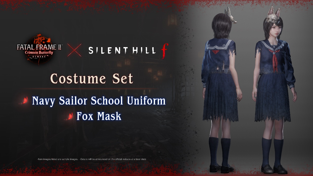 „Dieser kostenlose Zusatzinhalt bietet die kultige Matrosen-Schuluniform und Fuchsmaske von Shimizu Hinako aus Silent Hill f. Die Matrosen-Schuluniform kann von Mio getragen werden und die Fuchsmaske sowohl von Mio als auch Mayu“, heißt es. Die Inhalte „laden die Fans ein, beim Spielen […] einen Hauch des vergänglichen Mysteriums von Silent Hill f zu erleben.“