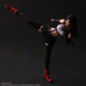 Diese neue „Play Arts Shin“-Reihe verbessert die klassischen „Play Arts Kai“-Figuren unter anderem durch bewegliche Augen, eine neue Gelenkstruktur für flüssigere Bewegungen und hochwertigere Materialien. Der neuen Tifa-Figur kommt natürlich vor allem die Beweglichkeit zugute.