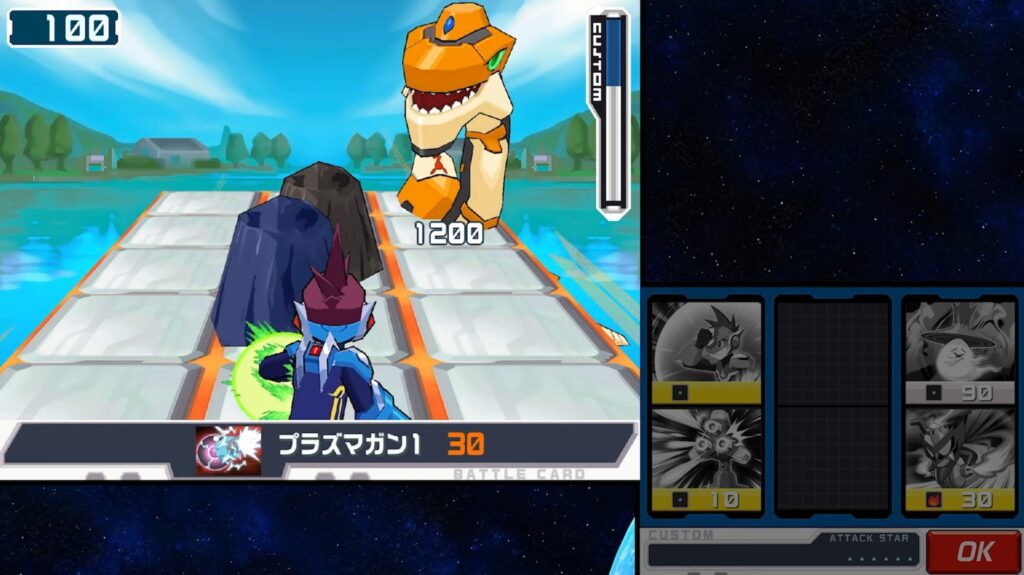 Anders als bei allen anderen Ablegern und Spin-offs der Mega-Man-Reihe verlaufen die Kämpfe bei den Star-Force-Titeln deutlich Taktik-orientierter und etwas weniger hektisch. Wir bekämpfen unsere Widersacher dieses Mal nicht direkt, sondern greifen diese auf einer Art Spielfeld mit drei Rastern an.