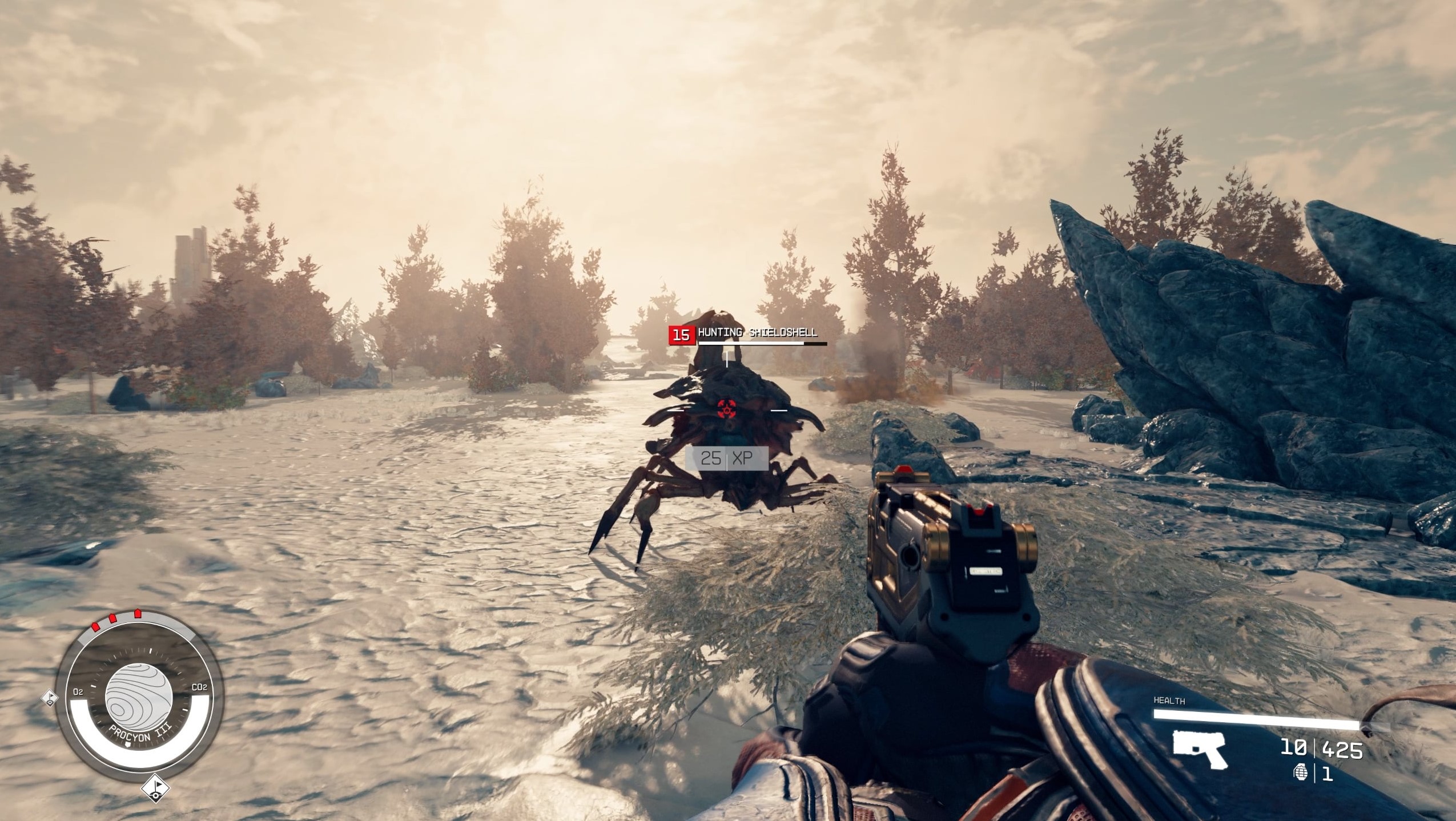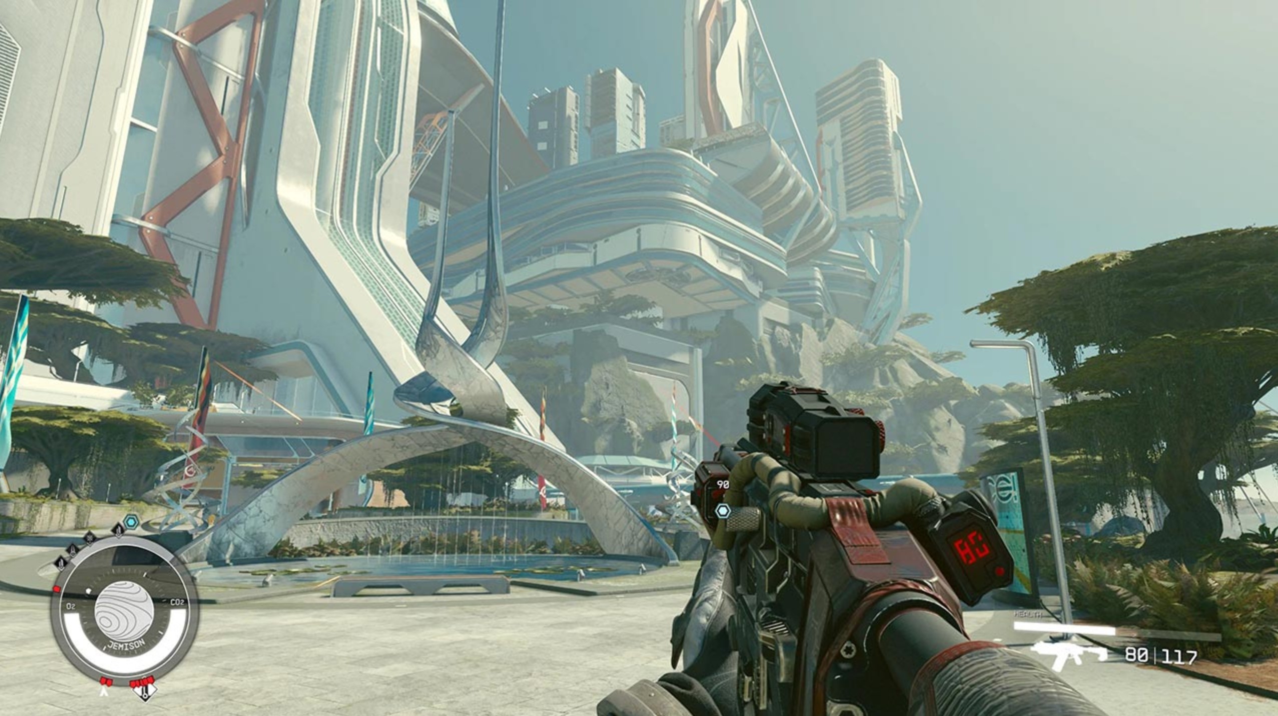 Immer noch tolle Optik, die speziell auf Planetenoberflächen wirklich zu begeistern weiß. Die hauseigene Creation Engine kann immer noch tolle Bilder schaffen und zudem läuft der Titel mittlerweile auch meist recht flüssig.
