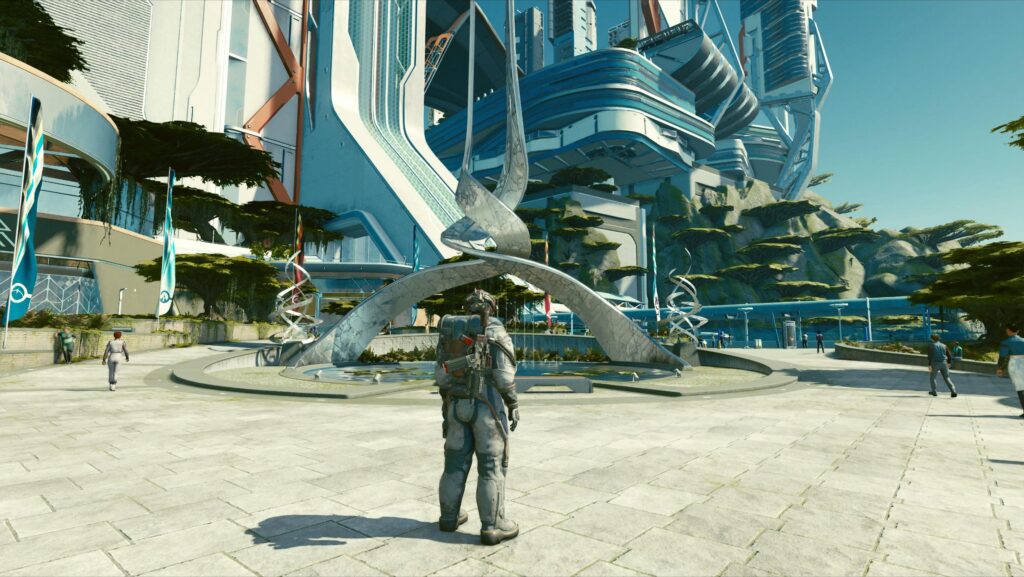 Starfield lief während unserer Testphase die meiste Zeit mit butterweichen 60 Frames. Ausnahmen stellen hier jedoch Szenen mit vielen Gegnern oder sehr belebte Außenbereiche, wie beispielsweise in der Hauptstadt „New Atlantis“, dar. Man hat außerdem die Wahl zwischen einem Performance-Modus mit 60 FPS oder einem Qualitätsmodus mit 30 oder variablen Frames. Jeder Spieler kann so das für sich beste Spielerlebnis austarieren. Auch VSync kann auf Wunsch abgeschaltet werden. So könnte man theoretisch noch ein oder zwei Frames rausholen, aber natürlich dann auf Kosten der Bildqualität.