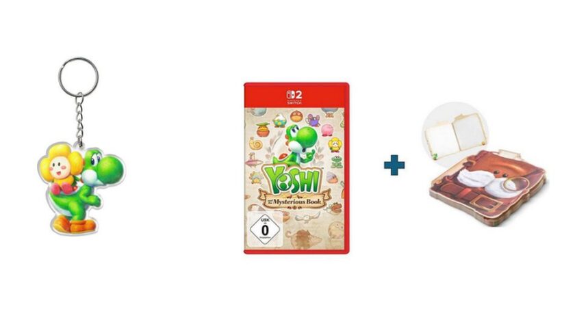 Yoshi and the Myterious Book wird im Mai erscheinen und erste Händler locken jetzt mit einem kleinen Rabatt und Vorbestellerboni. Konkret gibt’s bei Otto einen putzigen Schlüsselanhänger* und bei Media Markt* einen Notizblock. Dazu gewähren beide Händler aktuell 5 Euro Rabatt gegenüber den 69,99 Euro, die im Nintendo Store fällig werden.